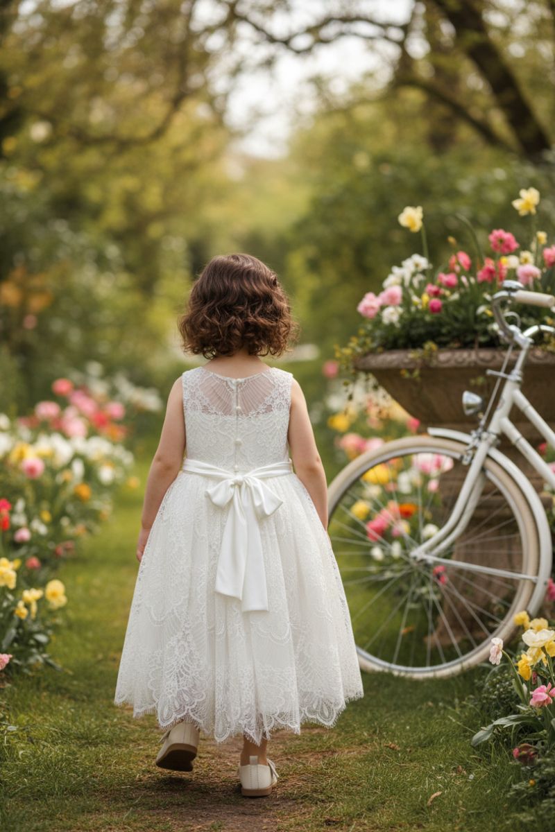 Ανάλαφρο δαντελένιο φόρεμα μοναδικής ποιότητας. Μια μοναδική δημιουργία με δαντέλα και στο πάνω και το κάτω μέρος του με όμορφο χειροποίητο υφασμάτινο λουλούδι και φιόγκο στο εμπρός μέρος. Μια λιτή δημιουργία με όμορφη πλάτη και λιτό χυτό σατέν φιόγκο στο πίσω μέρος δημιουργώντας ιδιαίτερη αίσθηση. Πρόκειται για ένα φόρεμα υψηλής ραπτικής σε ανάλαφρη γραμμή. Το εσωτερικό του είναι επενδυμένο με φόδρα 100% βαμβακερή. Χρώματα: Ιβουάρ