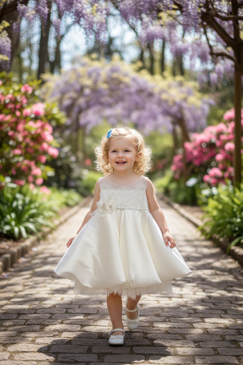 Ρομαντικό βαπτιστικό φόρεμα με δαντέλα και φούστα balloon με χειροποίητα λουλουδάκια στο πλάι, το φόρεμα είναι κατασκευασμένο από μοναδικής ποιότητας υφάσματα και δαντέλα που δημιουργεί μοναδική αίσθηση σε ivory απόχρωση. Πρόκειται για ένα φόρεμα υψηλής ραπτικής. Το εσωτερικό του είναι επενδυμένο με φόδρα 100% βαμβακερή. Χρώματα: Εκρού Ivory