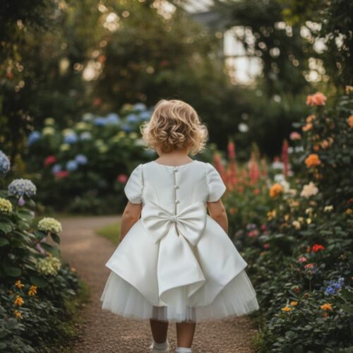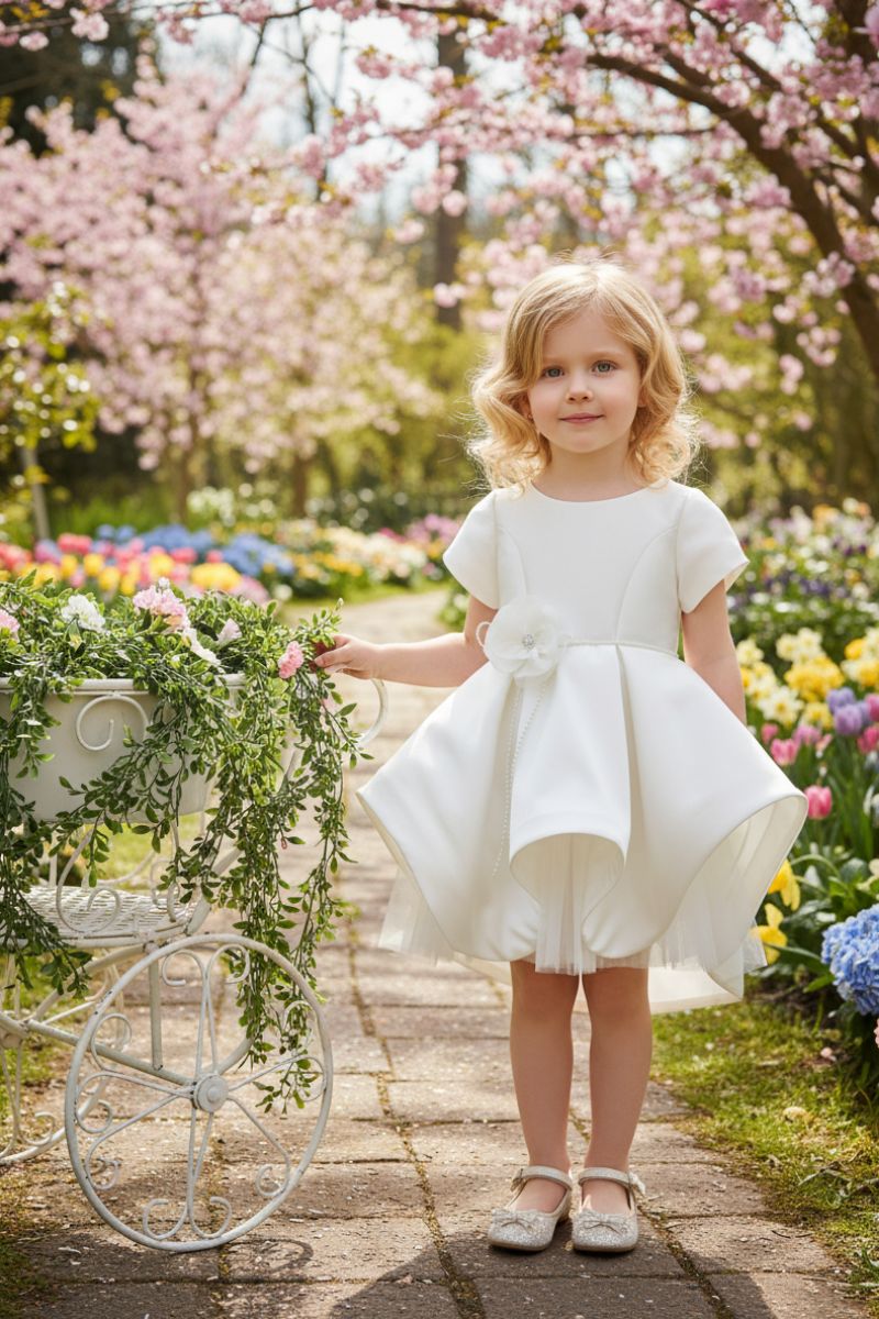 Πλούσιο και πριγκιπικό βαπτιστικό φόρεμα με χειροποίητο λουλούδι στο μπούστο. Το φόρεμα είναι κατασκευασμένο από μοναδικής ποιότητας υφάσματα που δημιουργούν μοναδική αίσθηση σε ιβουάρ απόχρωση. Πρόκειται για ένα φόρεμα υψηλής ραπτικής. Το εσωτερικό του είναι επενδυμένο με φόδρα 100% βαμβακερή. Χρώματα: ιβουάρ