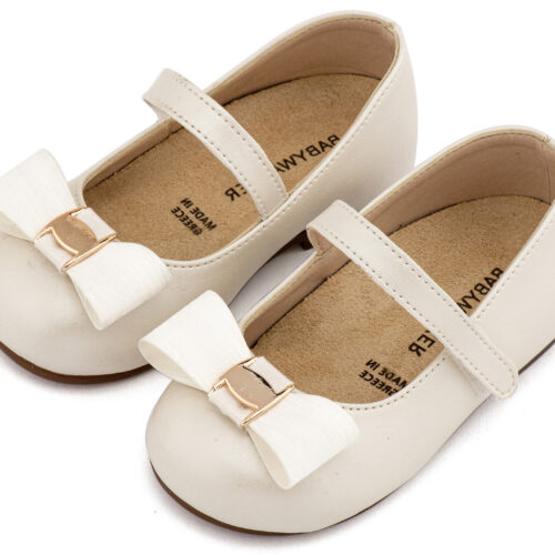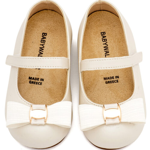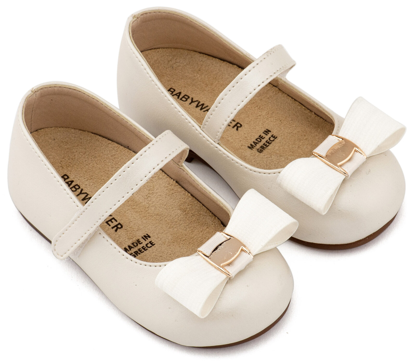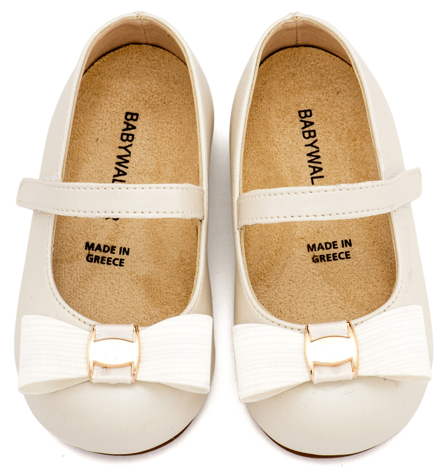 Βαπτιστικά Παπούτσια Babywalker Δερμάτινο Γοβάκι Μονή Μπαρέτα με Φιόγκο και Αγκράφα BS3600 σε Εκρού Χρώμα.
