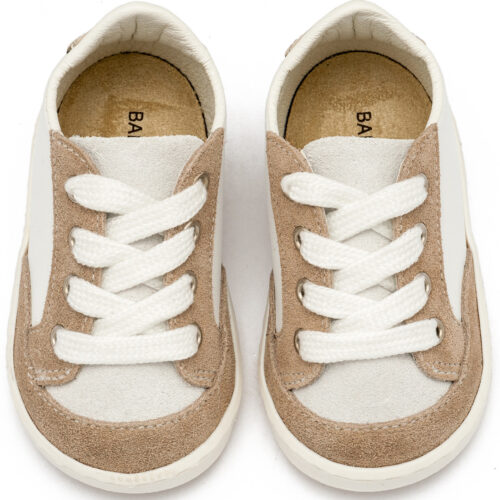 Βαπτιστικά Παπούτσια Babywalker Υφασμάτινο Δετό Sneaker MI1135 Μπεζ Λευκό