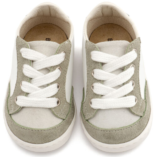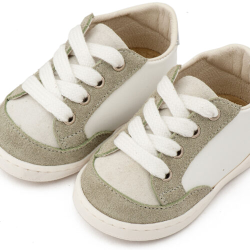Βαπτιστικά Παπούτσια Babywalker Δίχρωμο Δερμάτινο Δετό Sneakers σε Λευκό Μέντα και Λευκό Μπεζ Χρώμα
