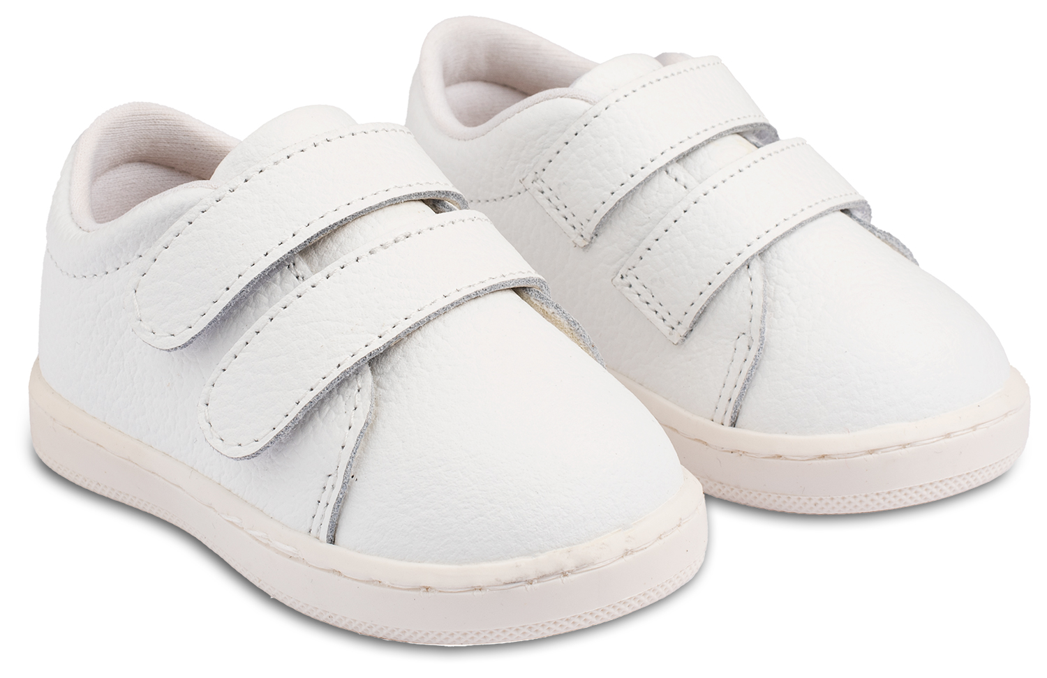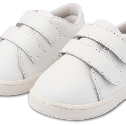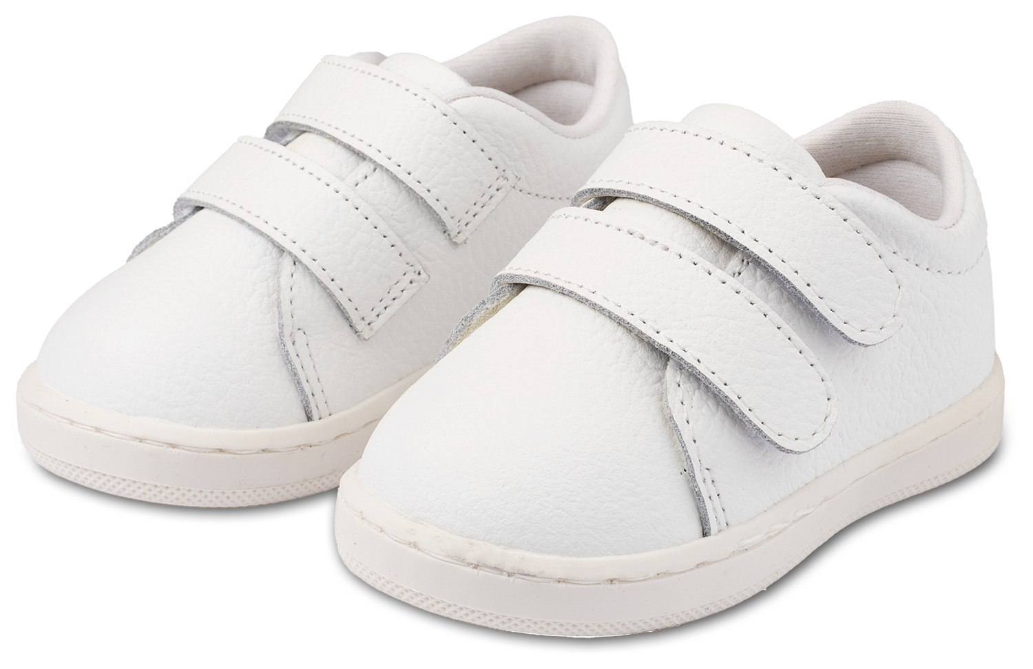 Βαπτιστικά Παπούτσια Babywalker Δερμάτινο Μονόχρωμο Sneakers Διπλή Μπαρέτα Χρατς σε Λευκό Χρώμα