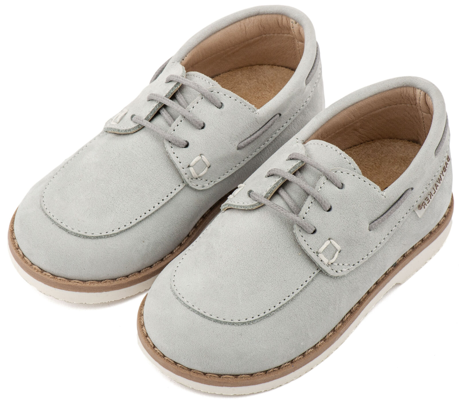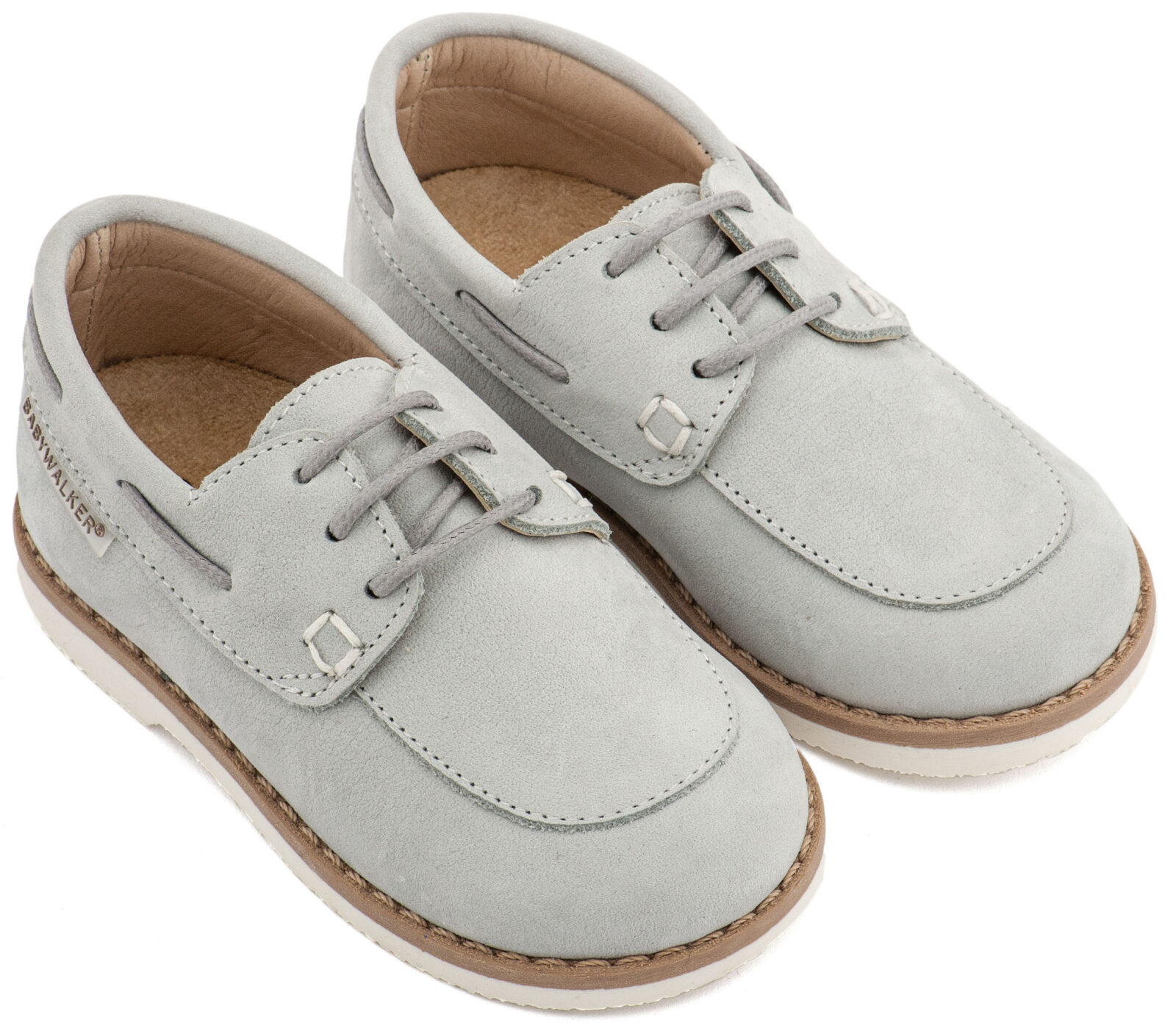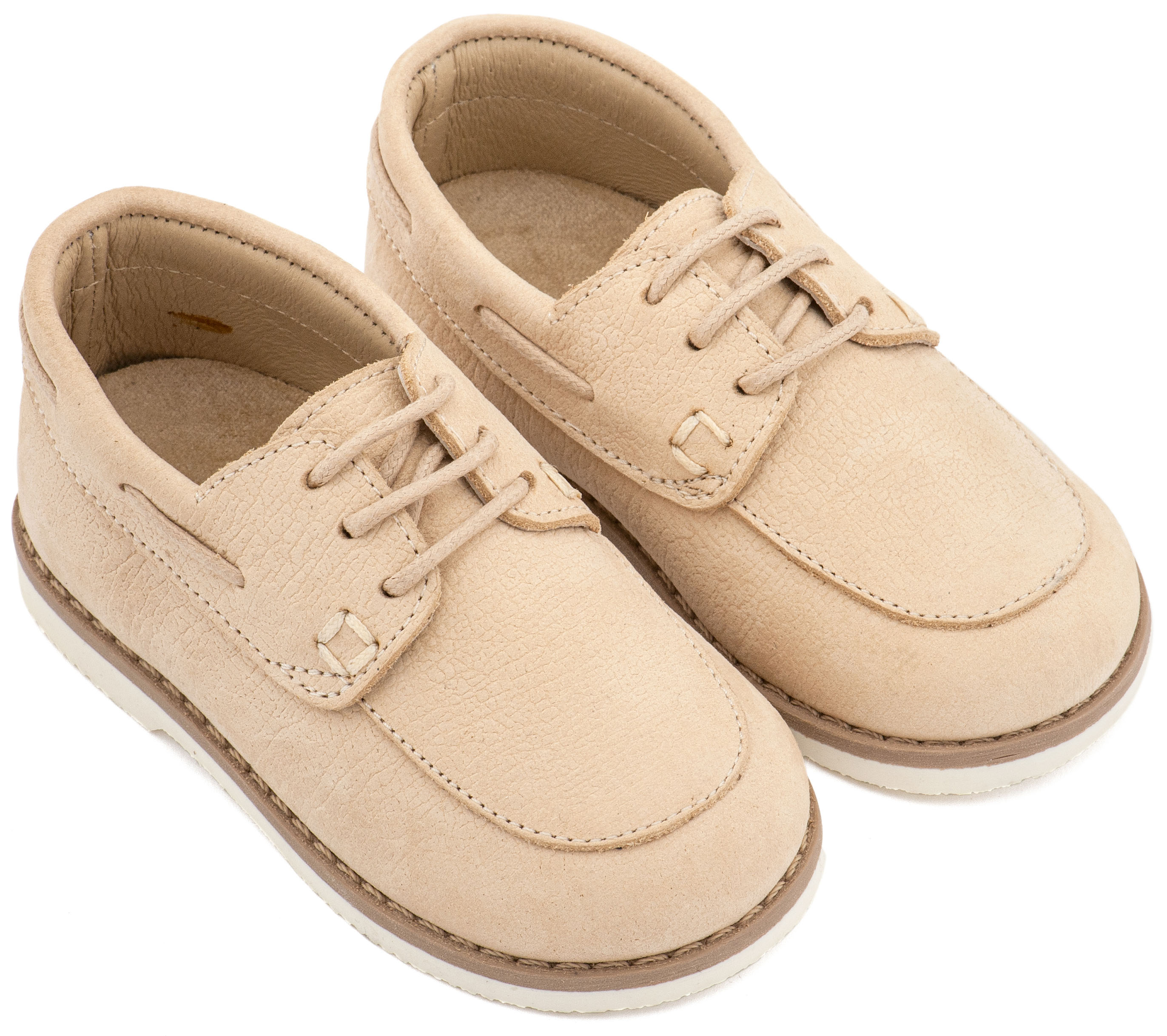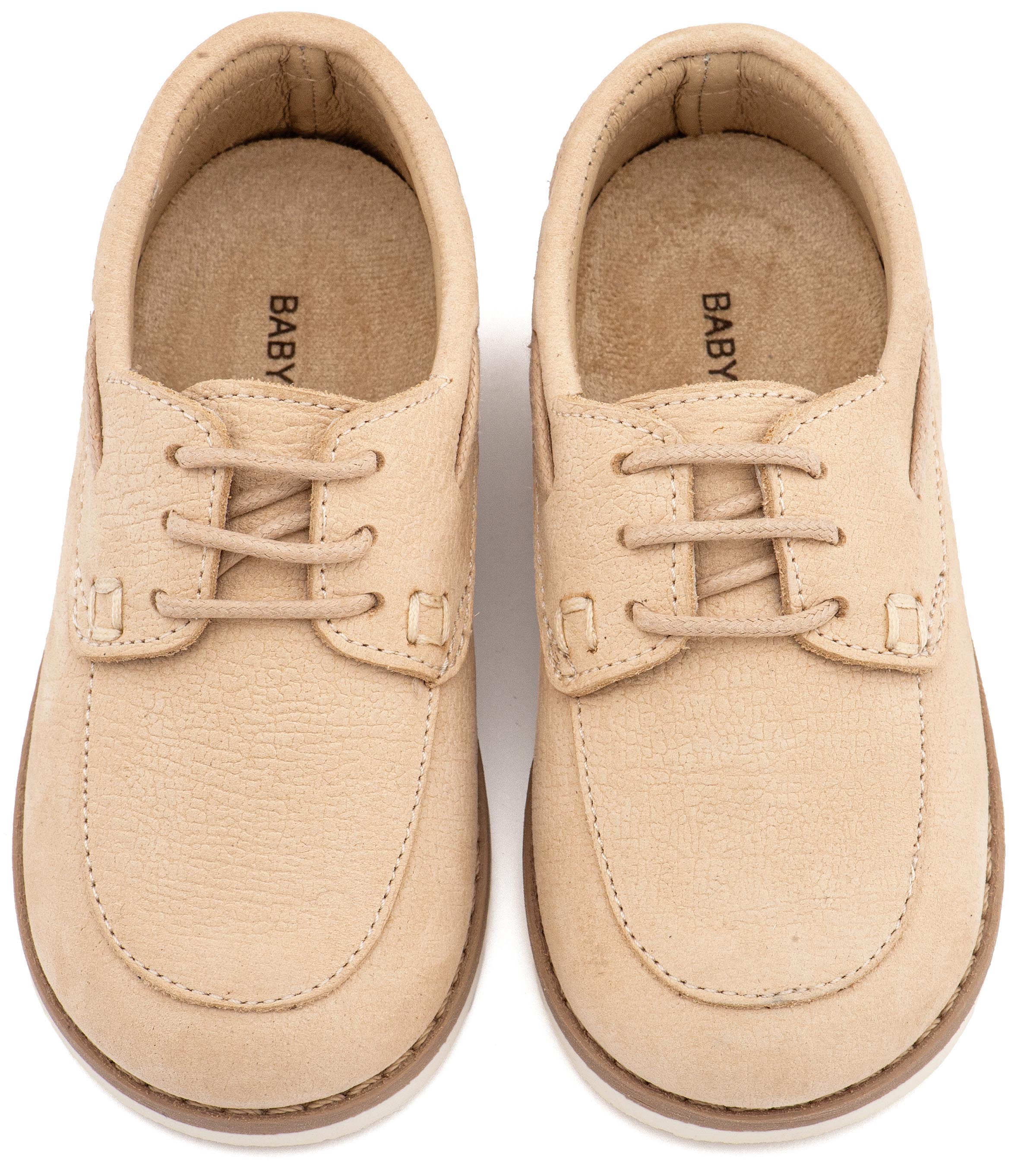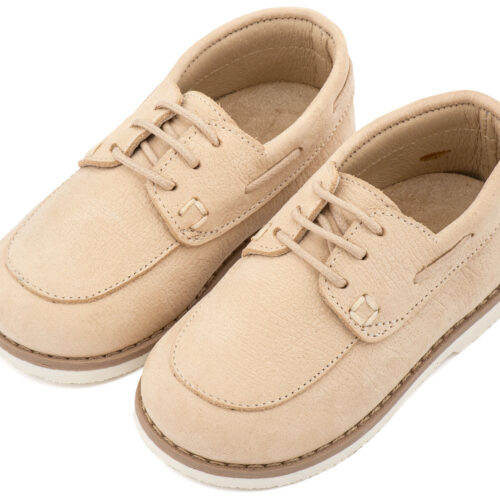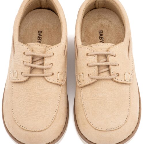 Βαπτιστικά Παπούτσια Babywalker Δετό Δερμάτινο Μοκασίνι BW 4308 από Δέρμα Ναμπούκ με Κορδόνι σε Μπεζ και Λευκό Χρώμα.