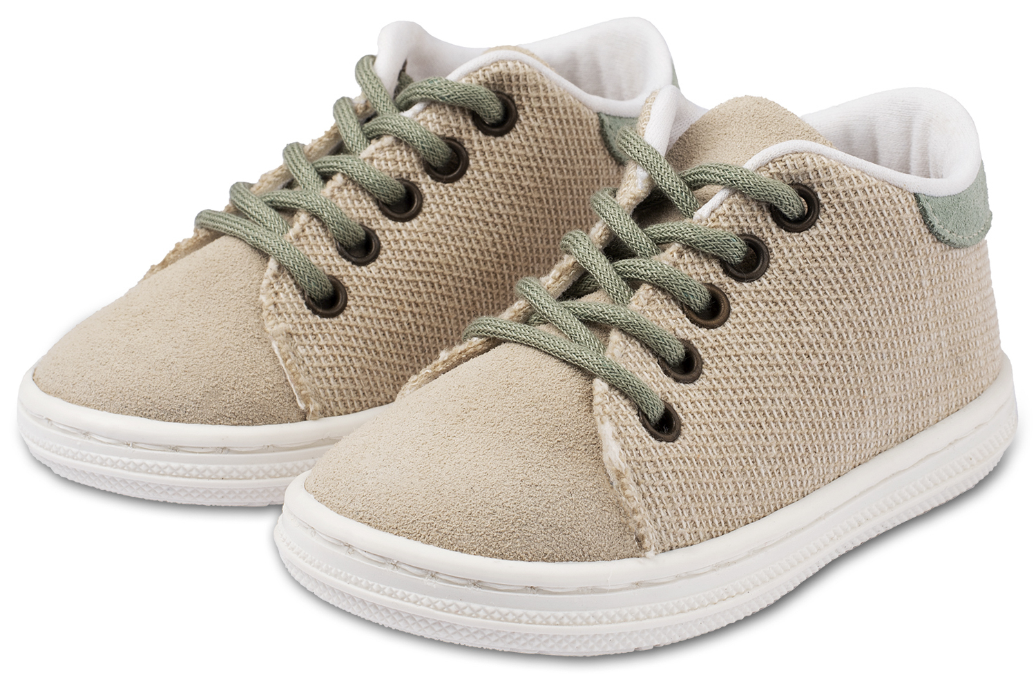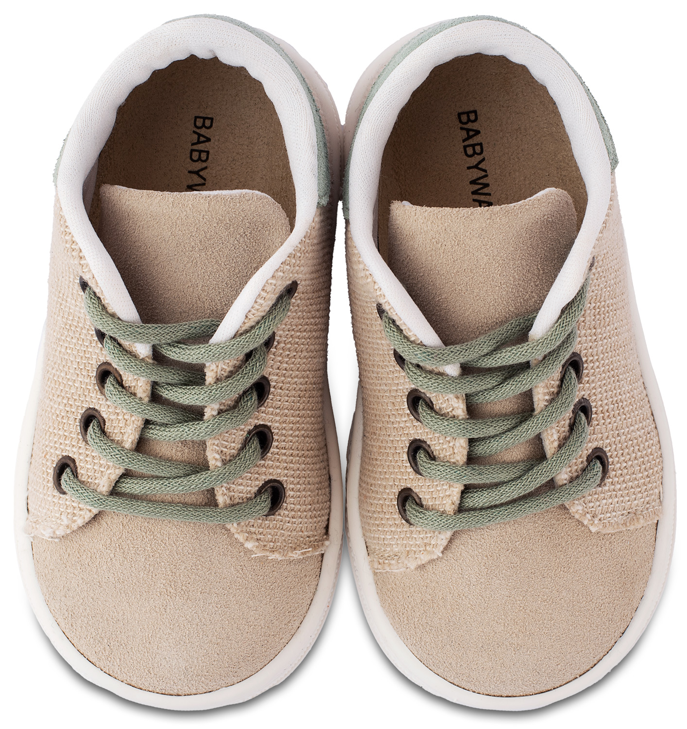 Βαπτιστικά Παπούτσια Babywalker Δετό Δίχρωμο Σνίκερ με Δέρμα και Ύφασμα σε Μπεζ Μέντα Χρώμα