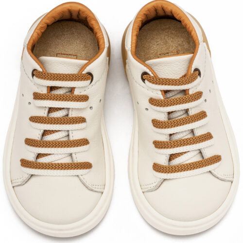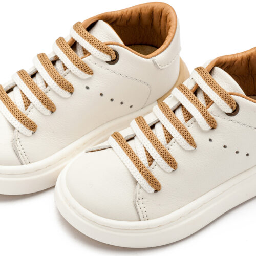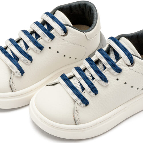 Βαπτιστικά Παπούτσια Babywalker EXC5294 Δερμάτινο Δετό Sneaker με Δίχρωμο Κορδόνι σε Λευκό Μπεζ και Λευκό Μπλε Χρώμα