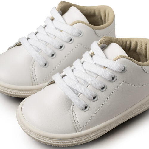 Βαπτιστικά Παπούτσια Babywalker Δετό Σνίκερ με Συνθετικό Δέρμα σε Λευκό Χρώμα