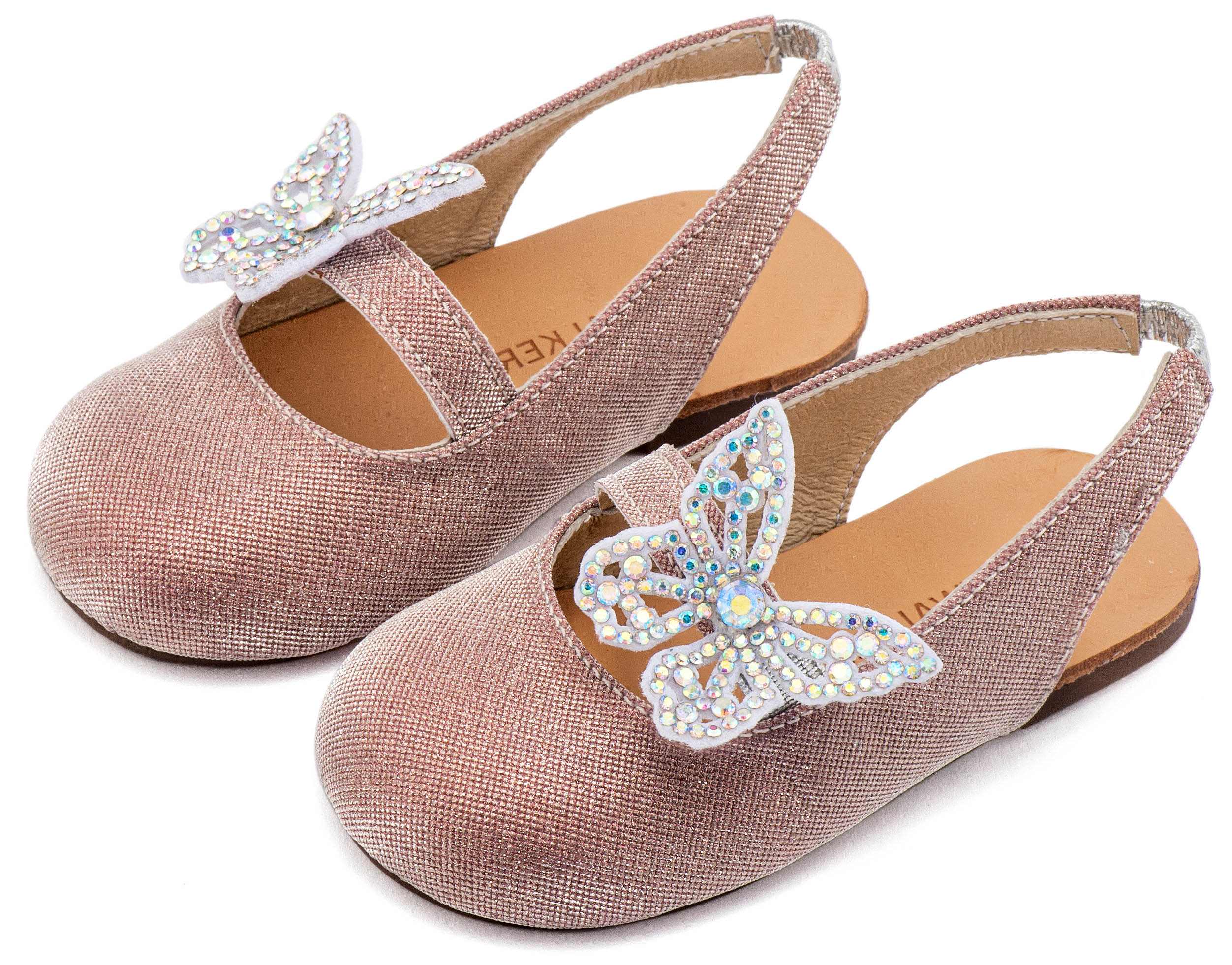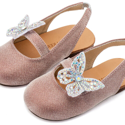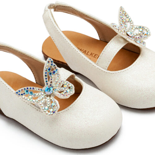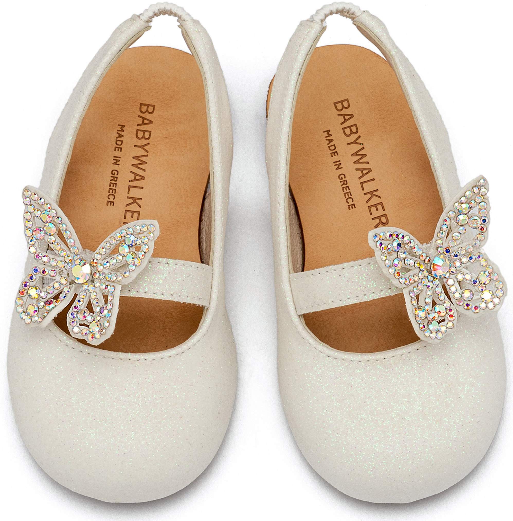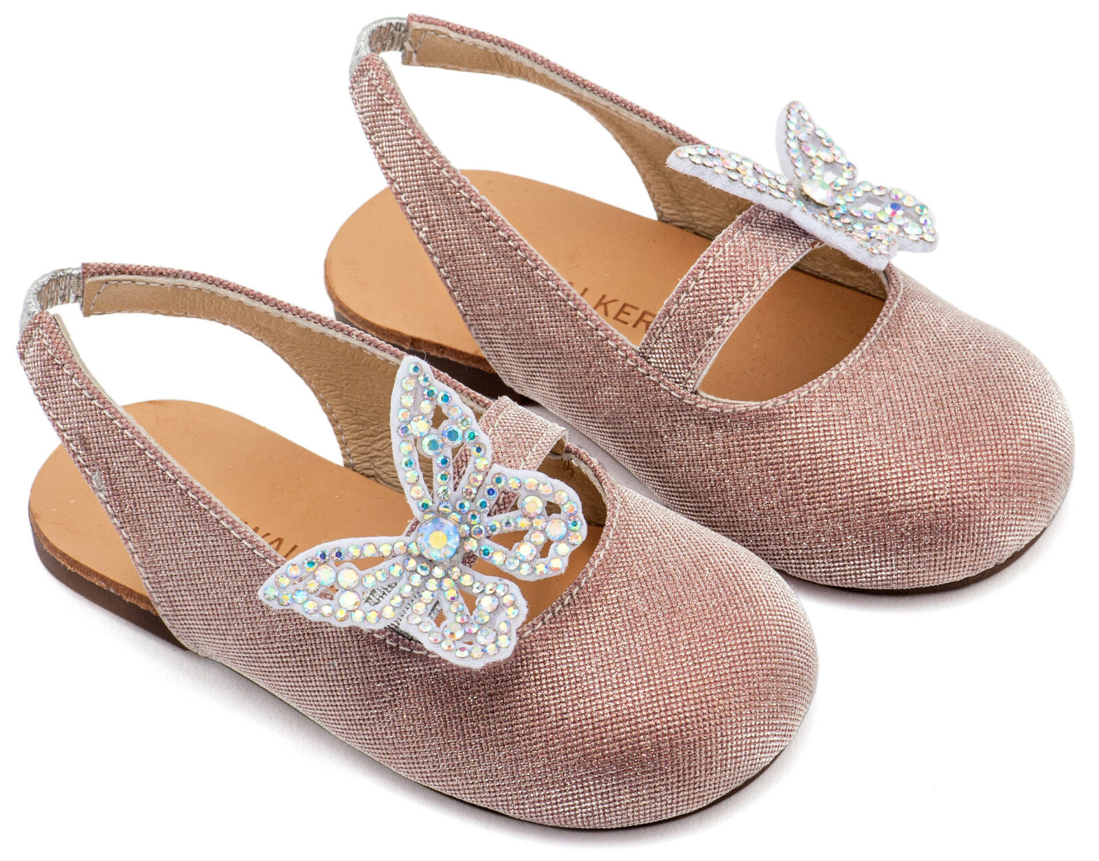Βαπτιστικά Παπούτσια Babywalker Γαλλικό Σαμπό Διακοσμημένο με Στρασένια Πεταλούδα στο Πλάι EXC5881 σε Λευκό και Ροζ Αντικέ Χρώμα.