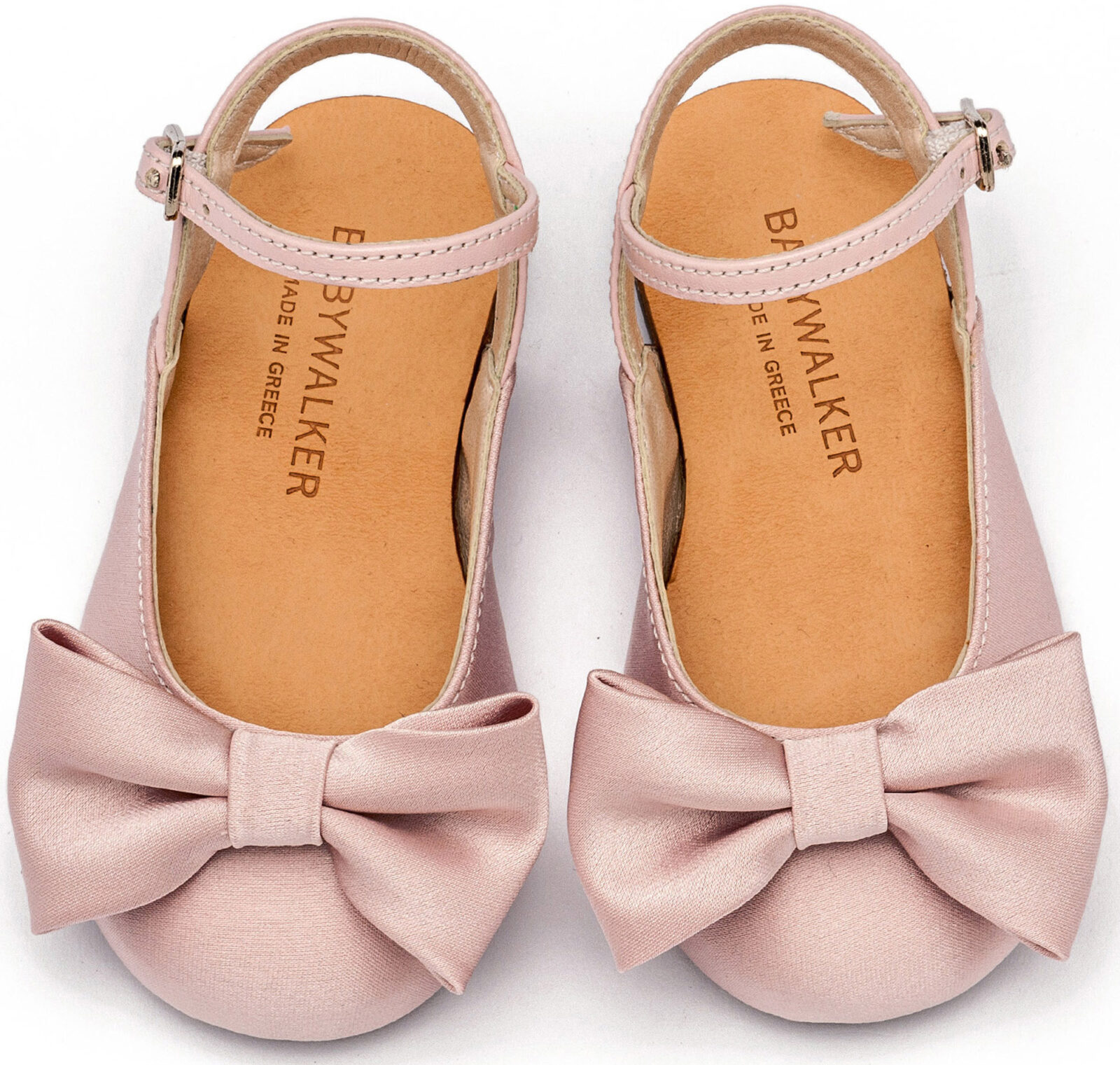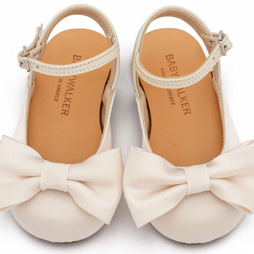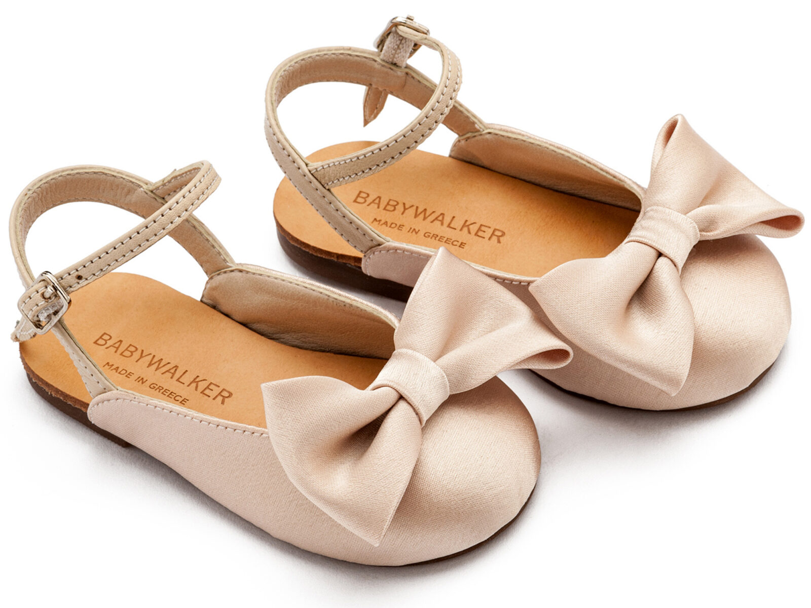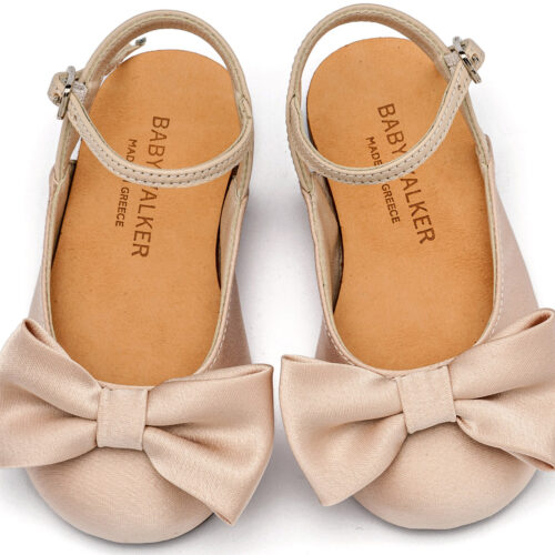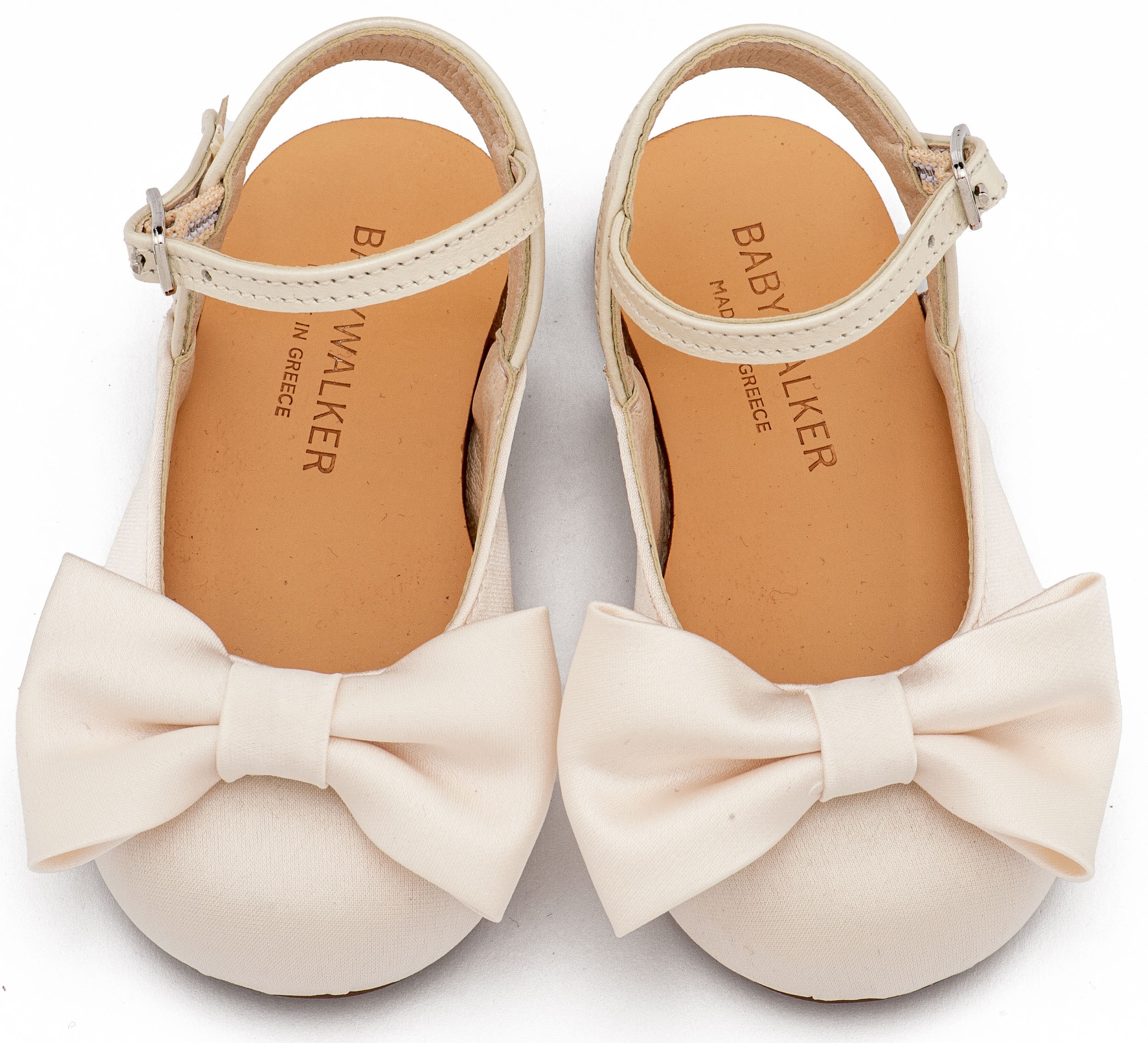 Βαπτιστικά Παπούτσια Babywalker Γαλλικό Σαμπό με Σατέν Φιόγκο BW4855 Μπεζ, Λαδί, Ροζ, Εκρού Χρώμα.