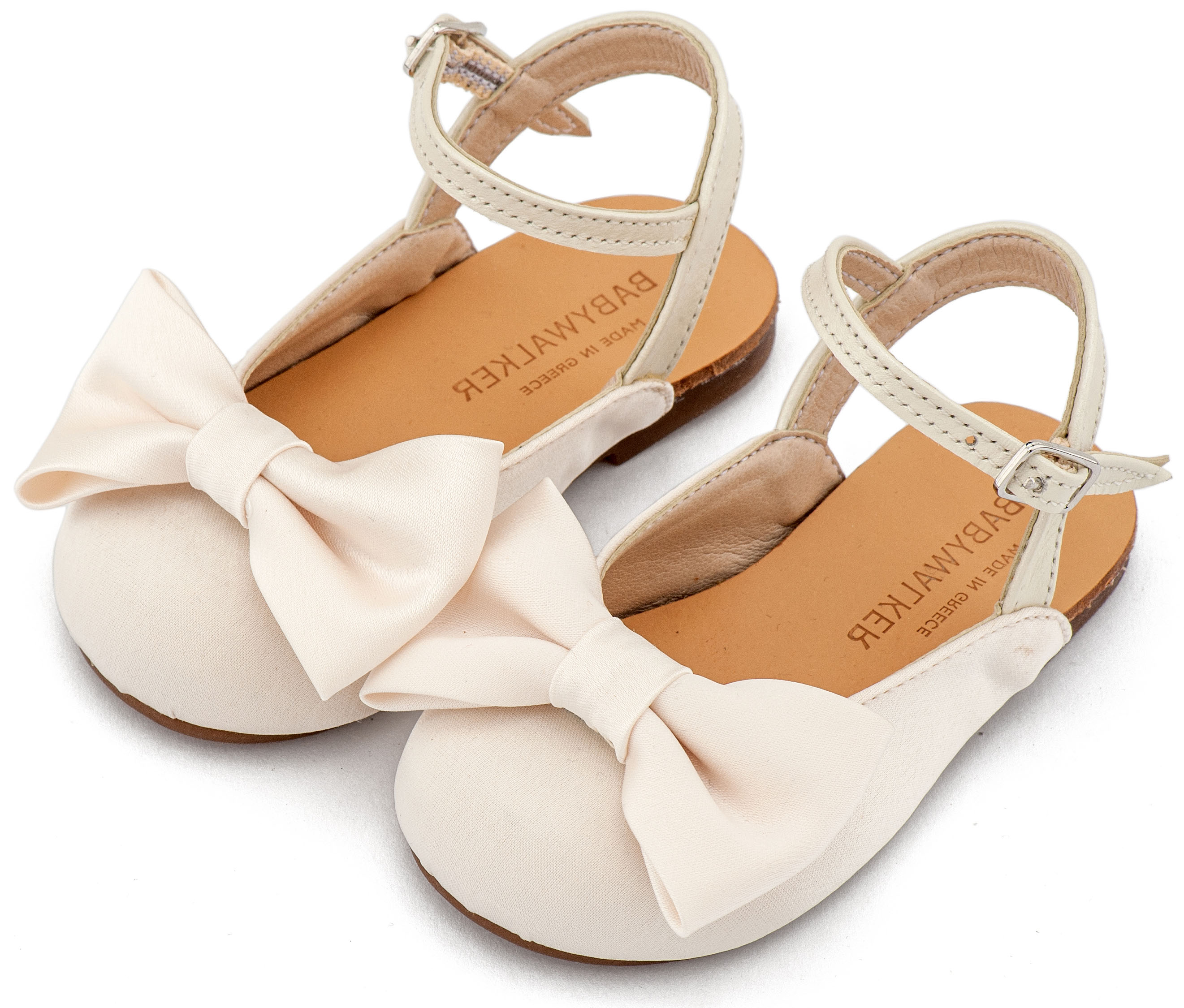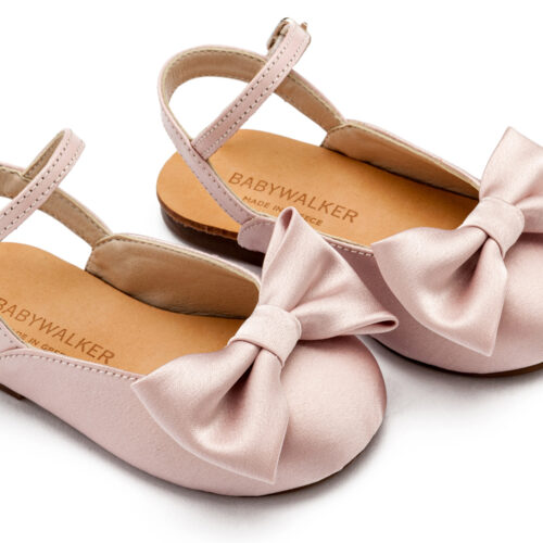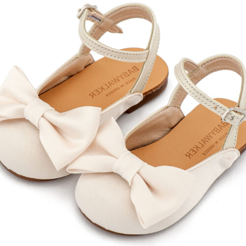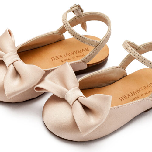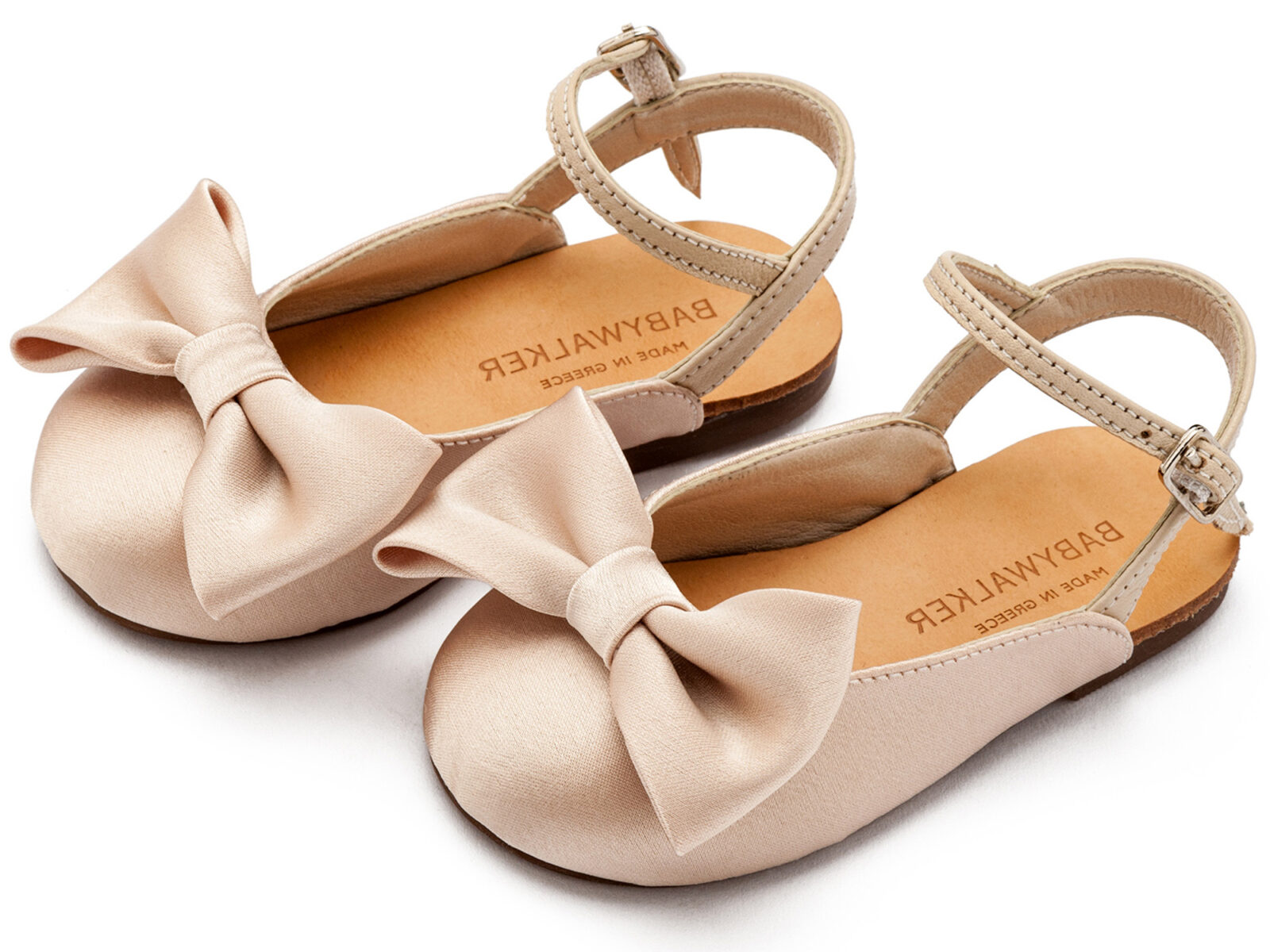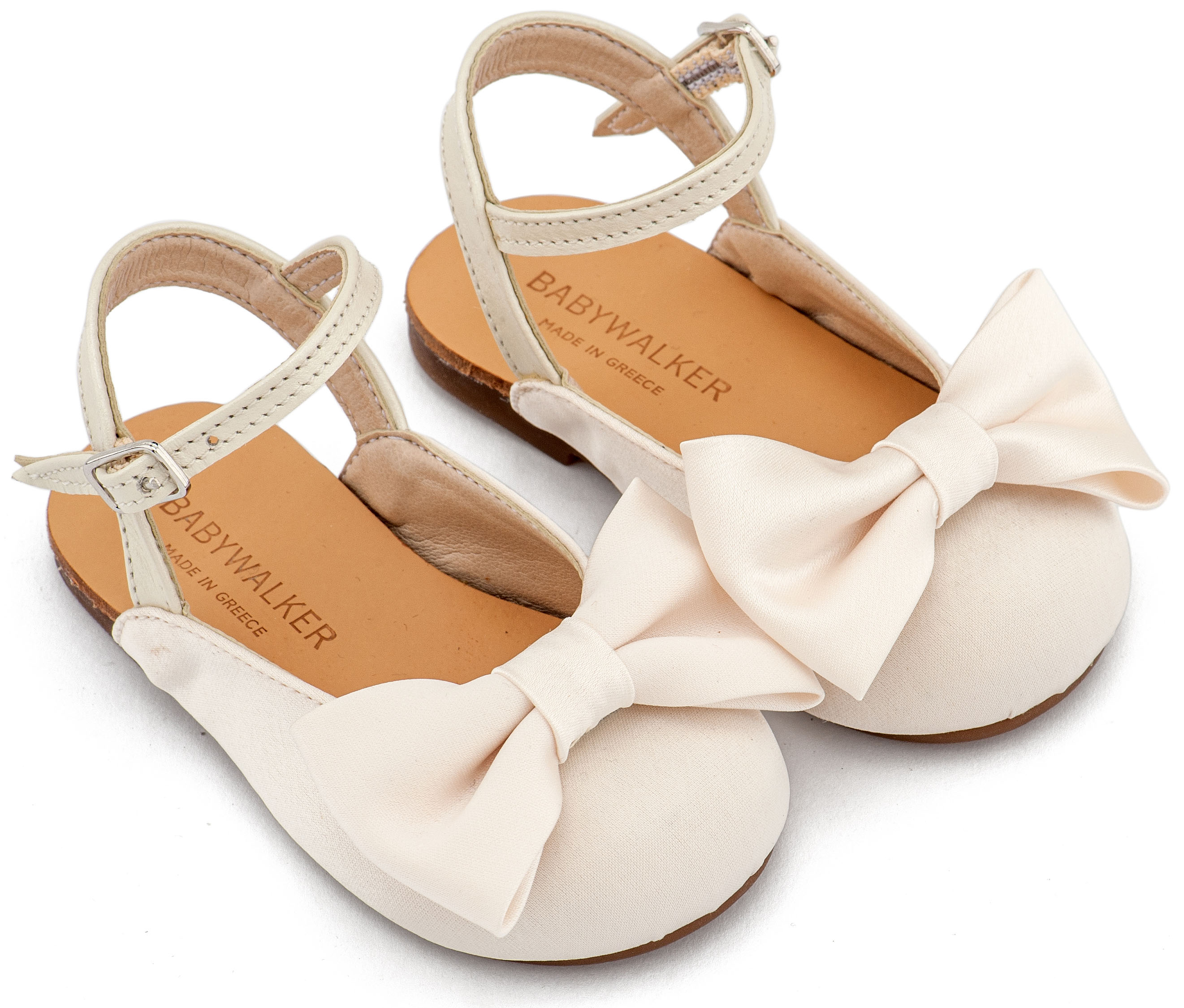 Βαπτιστικά Παπούτσια Babywalker Γαλλικό Σαμπό με Σατέν Φιόγκο BW4855 Μπεζ, Λαδί, Ροζ, Εκρού Χρώμα.