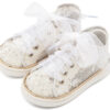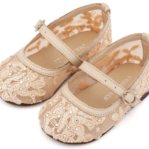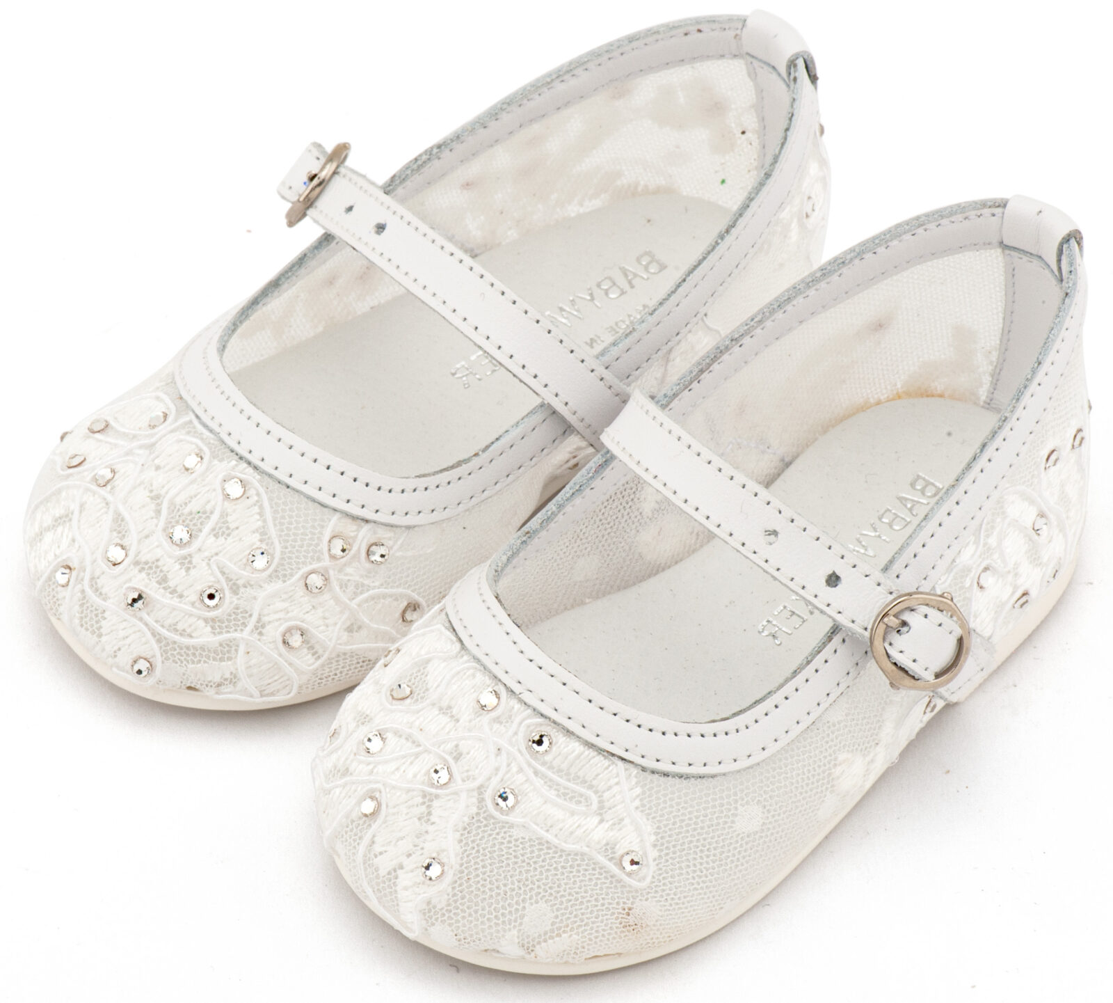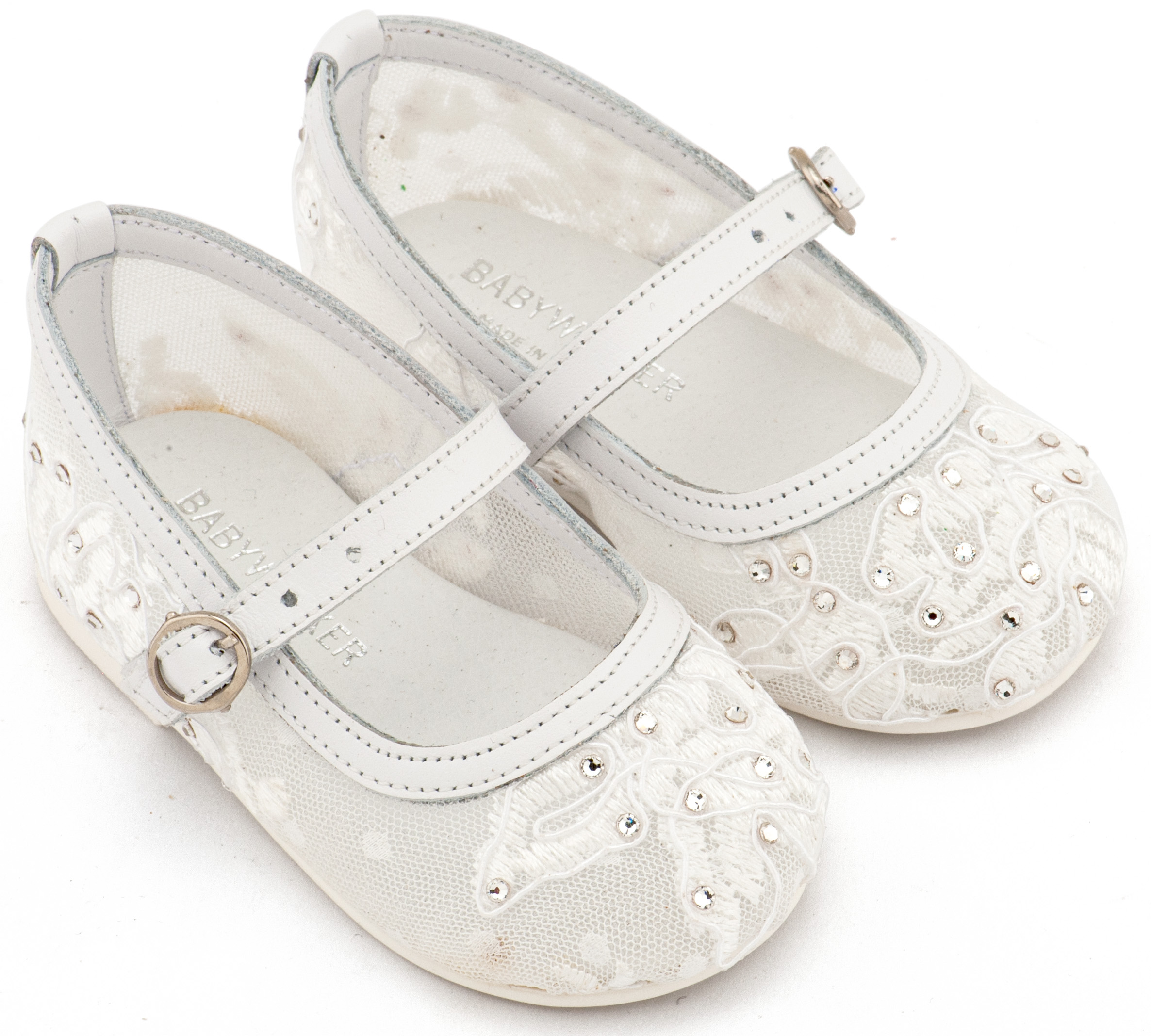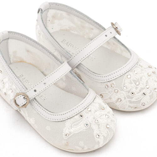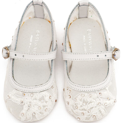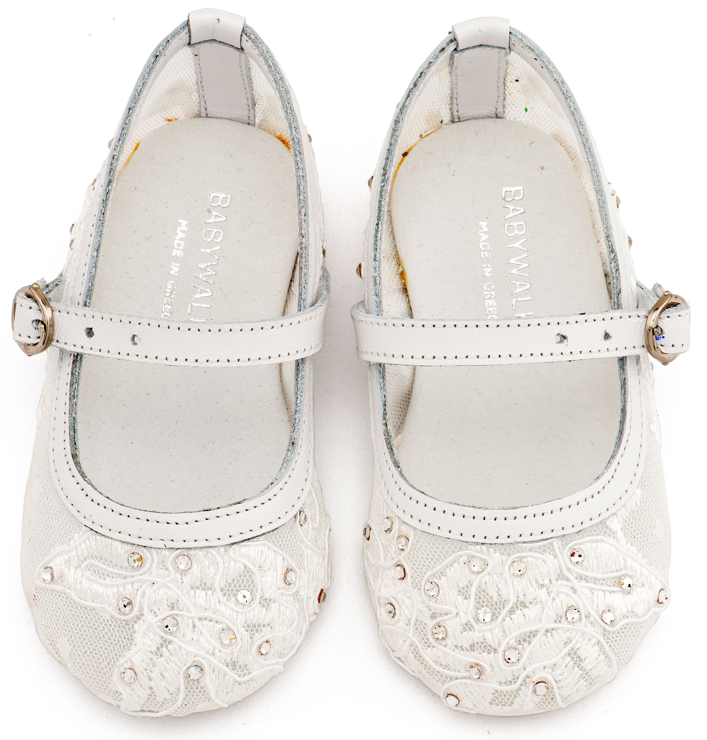 Βαπτιστικά Παπούτσια Babywalker Γοβάκι απο Ύφασμα Φιλντιρέ Δαντέλα με Δερμάτινες Λεπτομέρειες LU6128 σε Λευκό και Μπεζ Χρώμα.