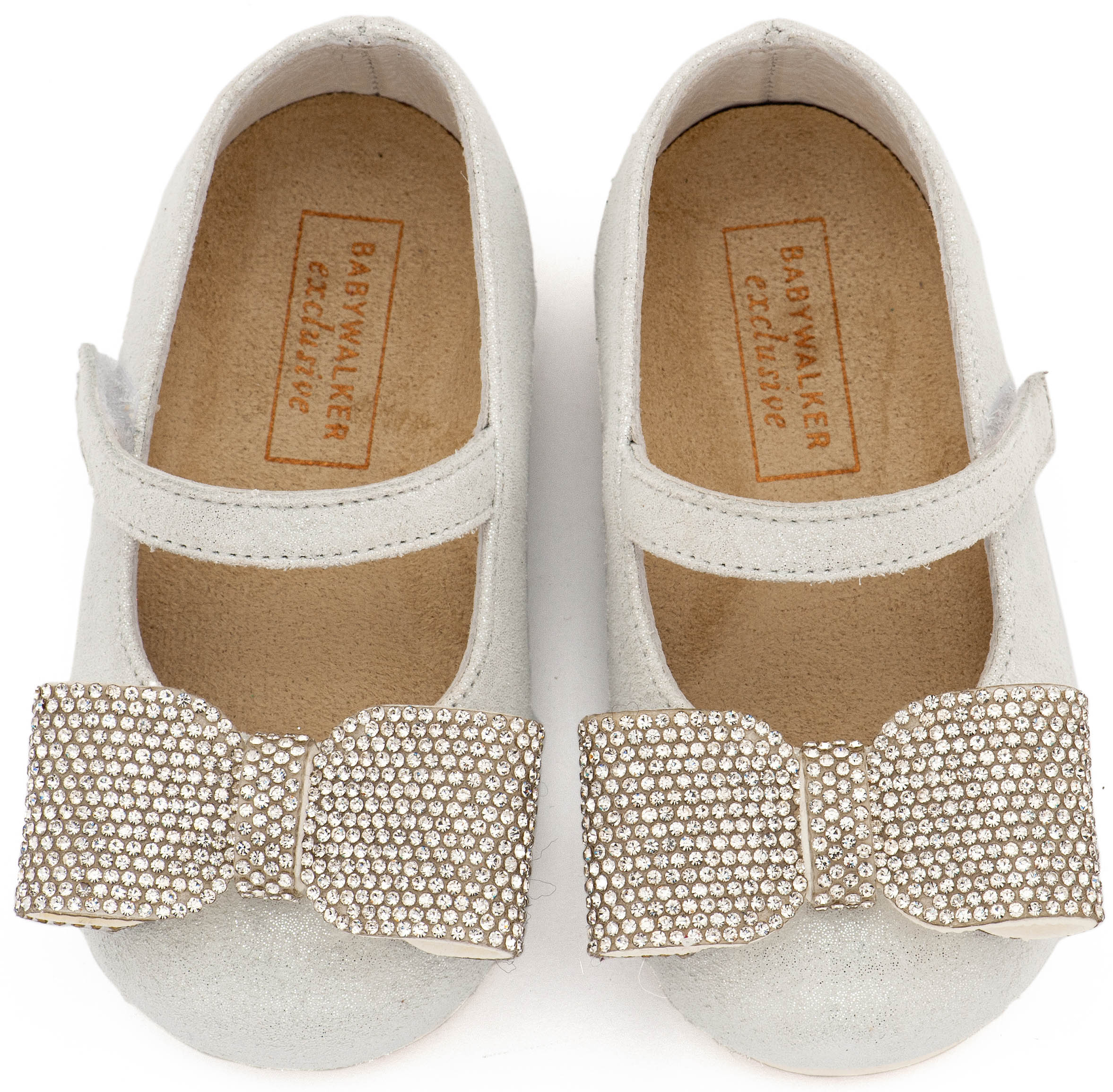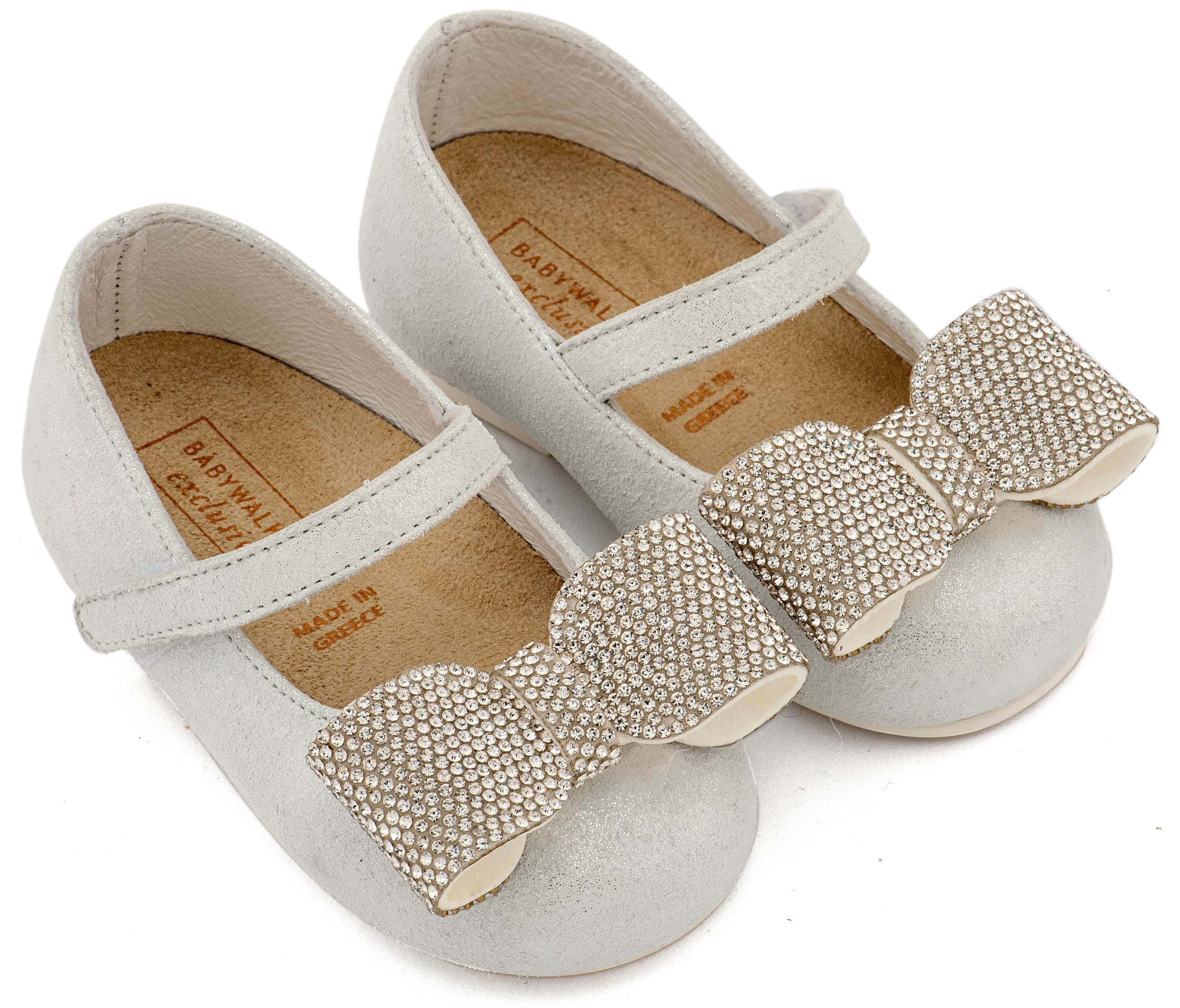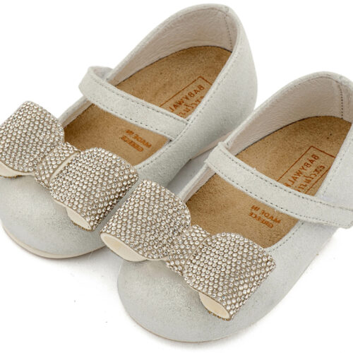Βαπτιστικά Παπούτσια Babywalker Γοβάκι Μονή Μπαρέτα Διακοσμημένο με Στρασένιο Φιόγκο EXC5883 Λευκό Πάγου Χρώμα.