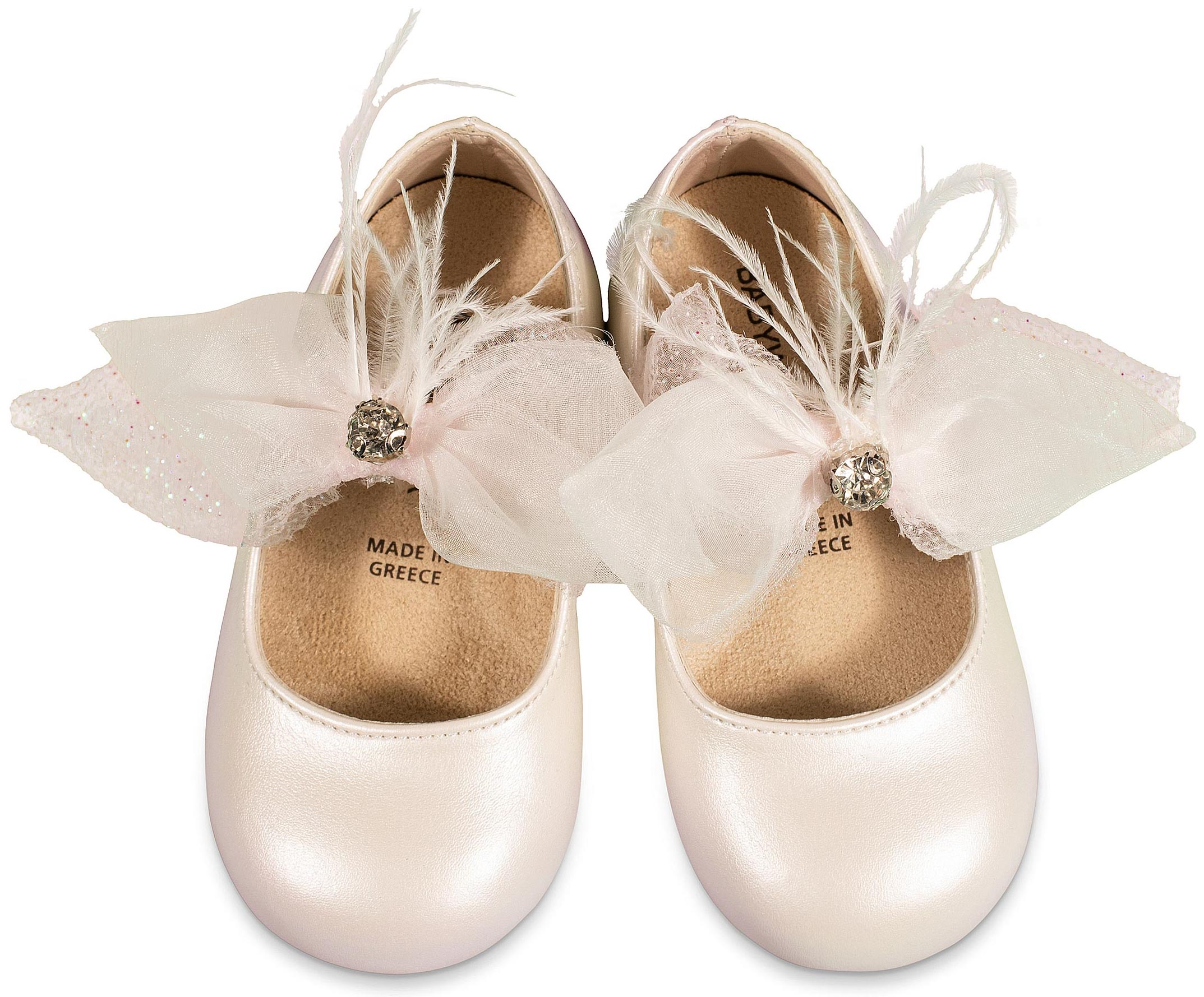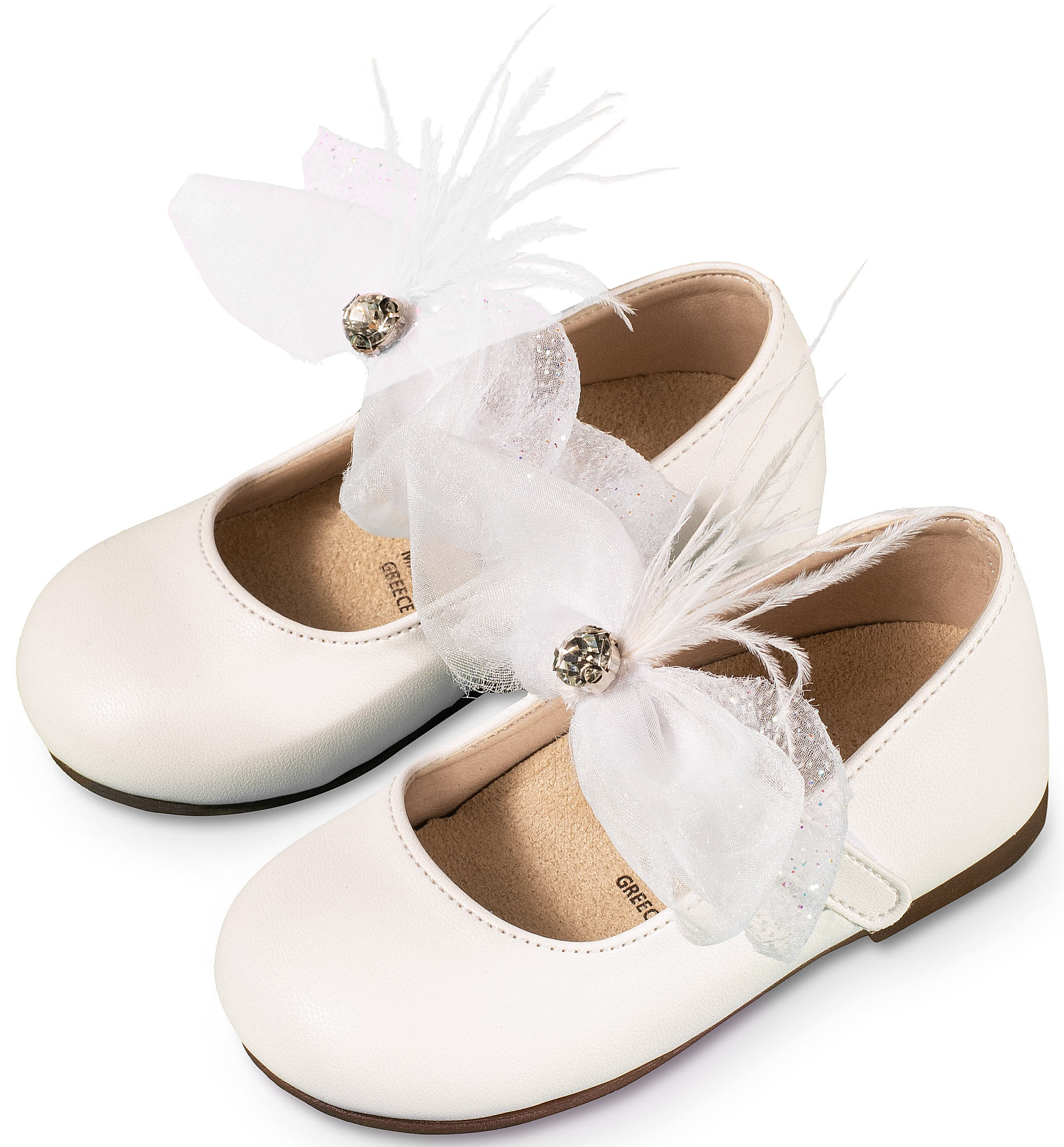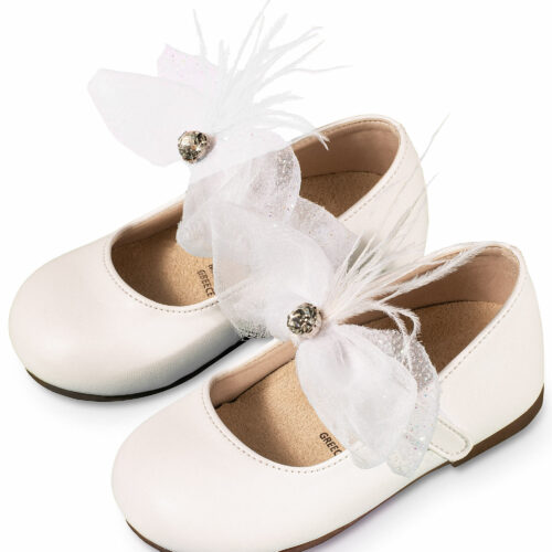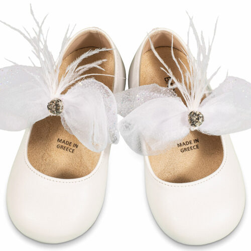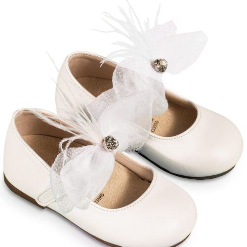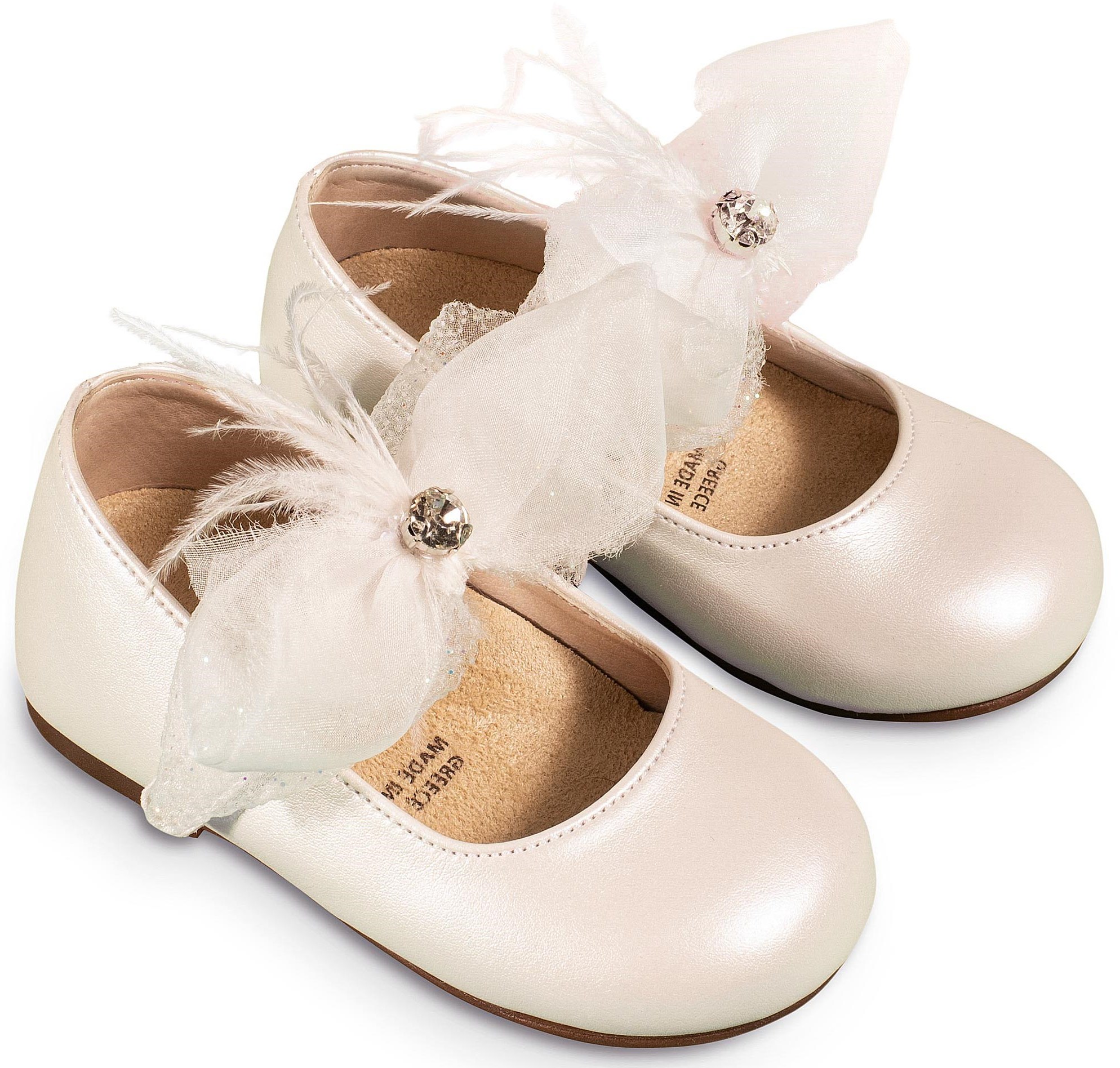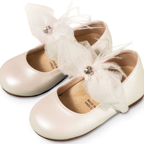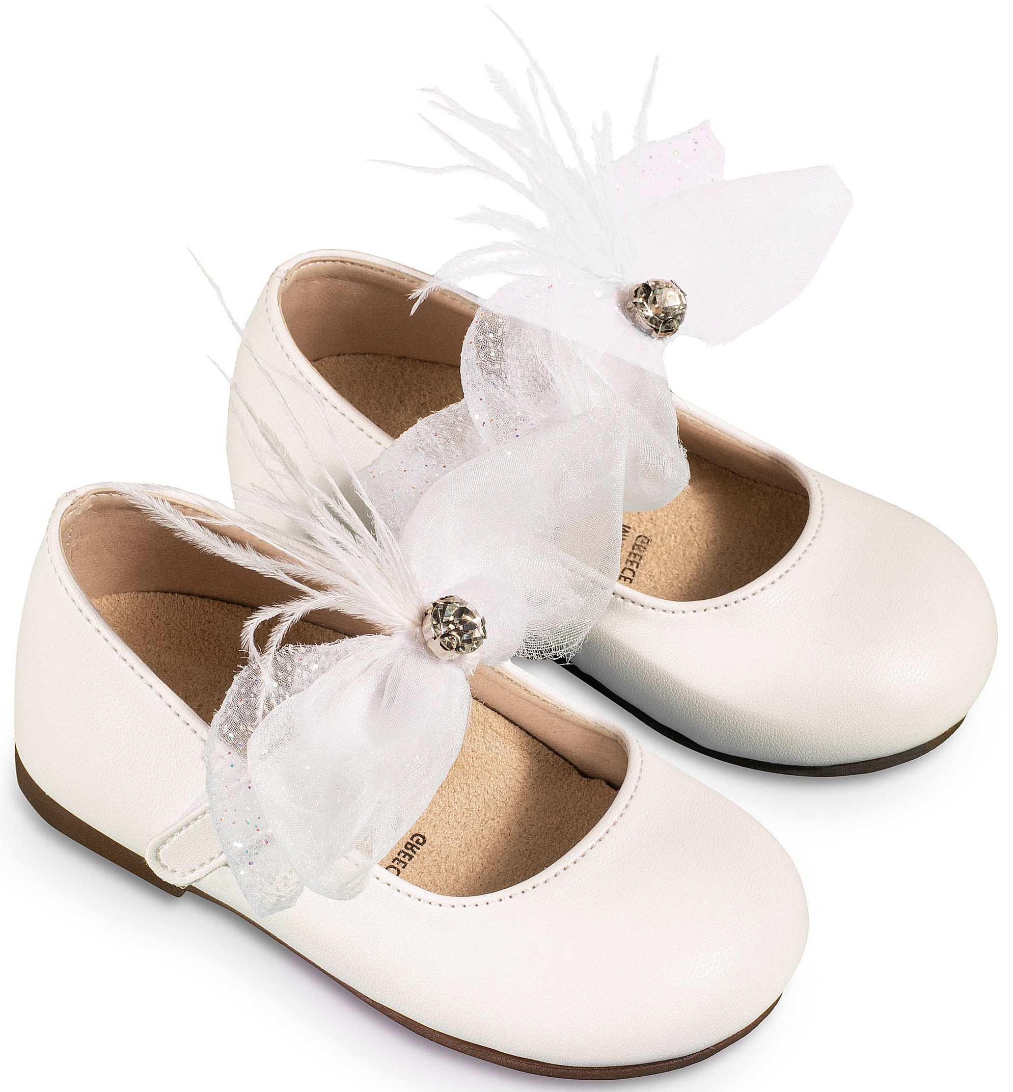 Βαπτιστικά Παπούτσια Babywalker Γοβάκι Μονή Μπαρέτα με Υφασμάτινο Χειροποίητο Φιόγκο από Συνθετικό Δέρμα BS3562 σε Εκρού και Λευκό Χρώμα.