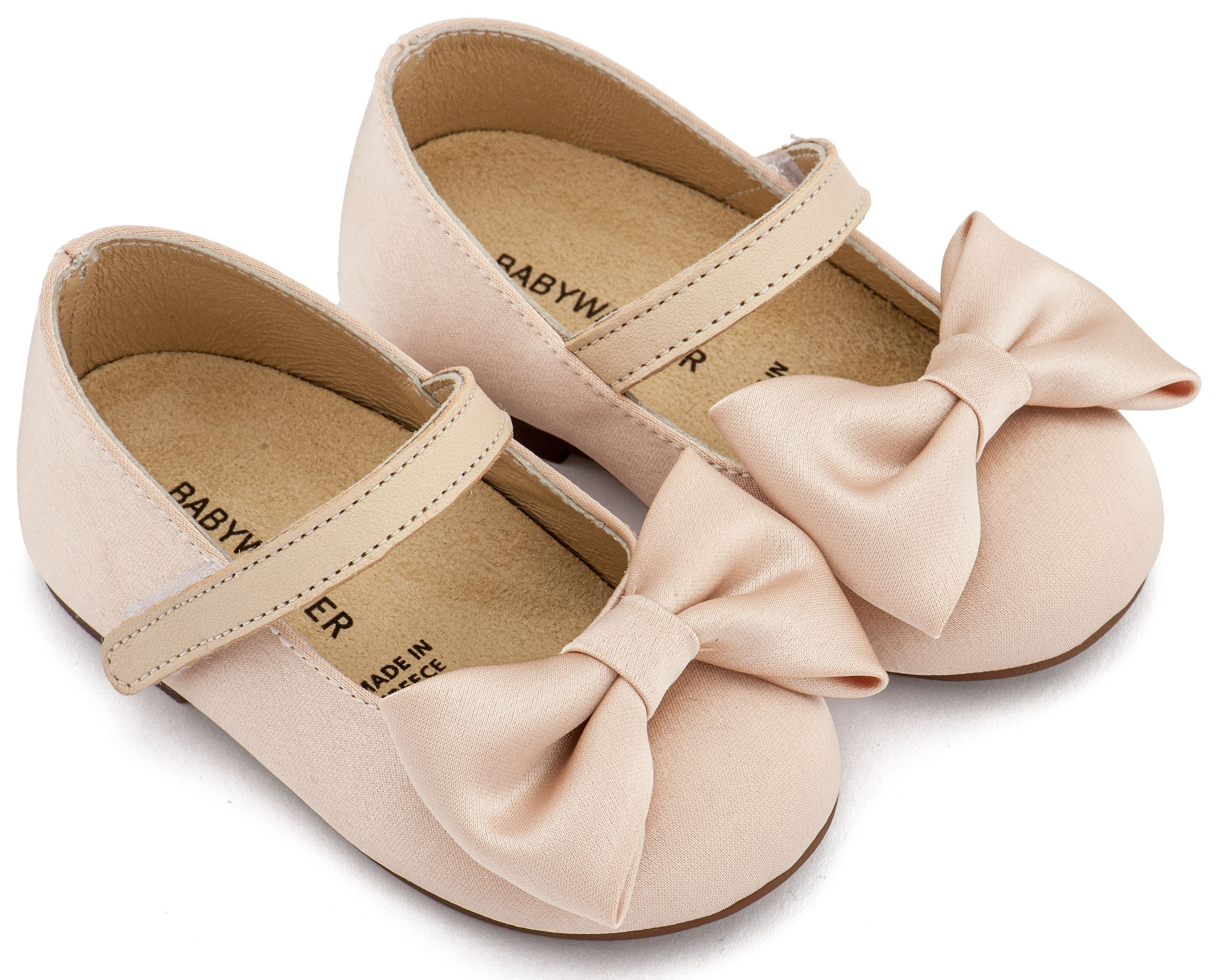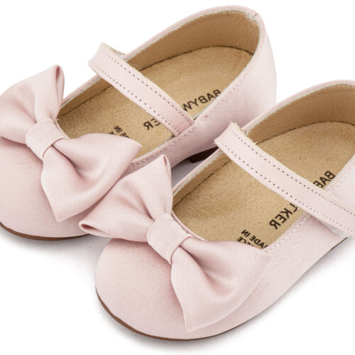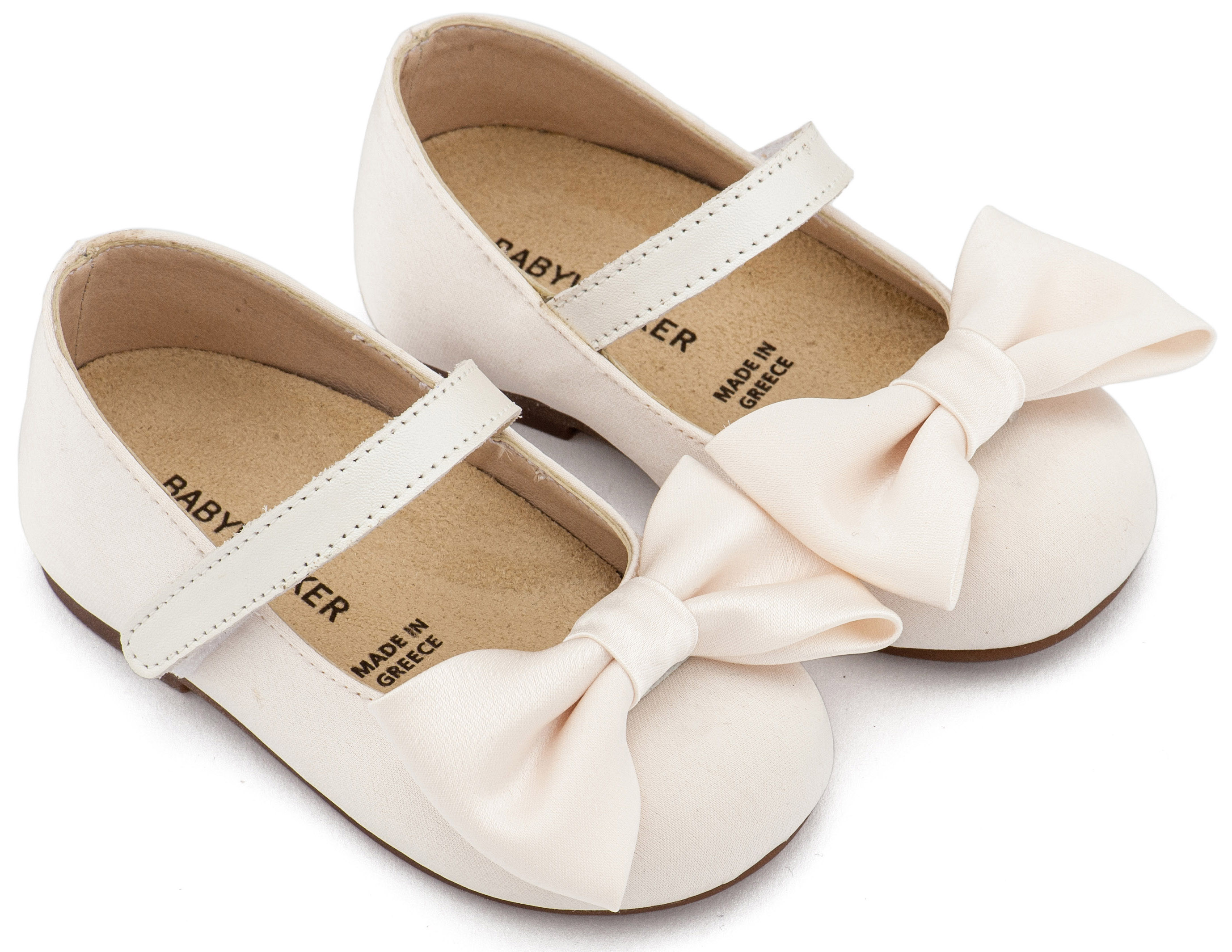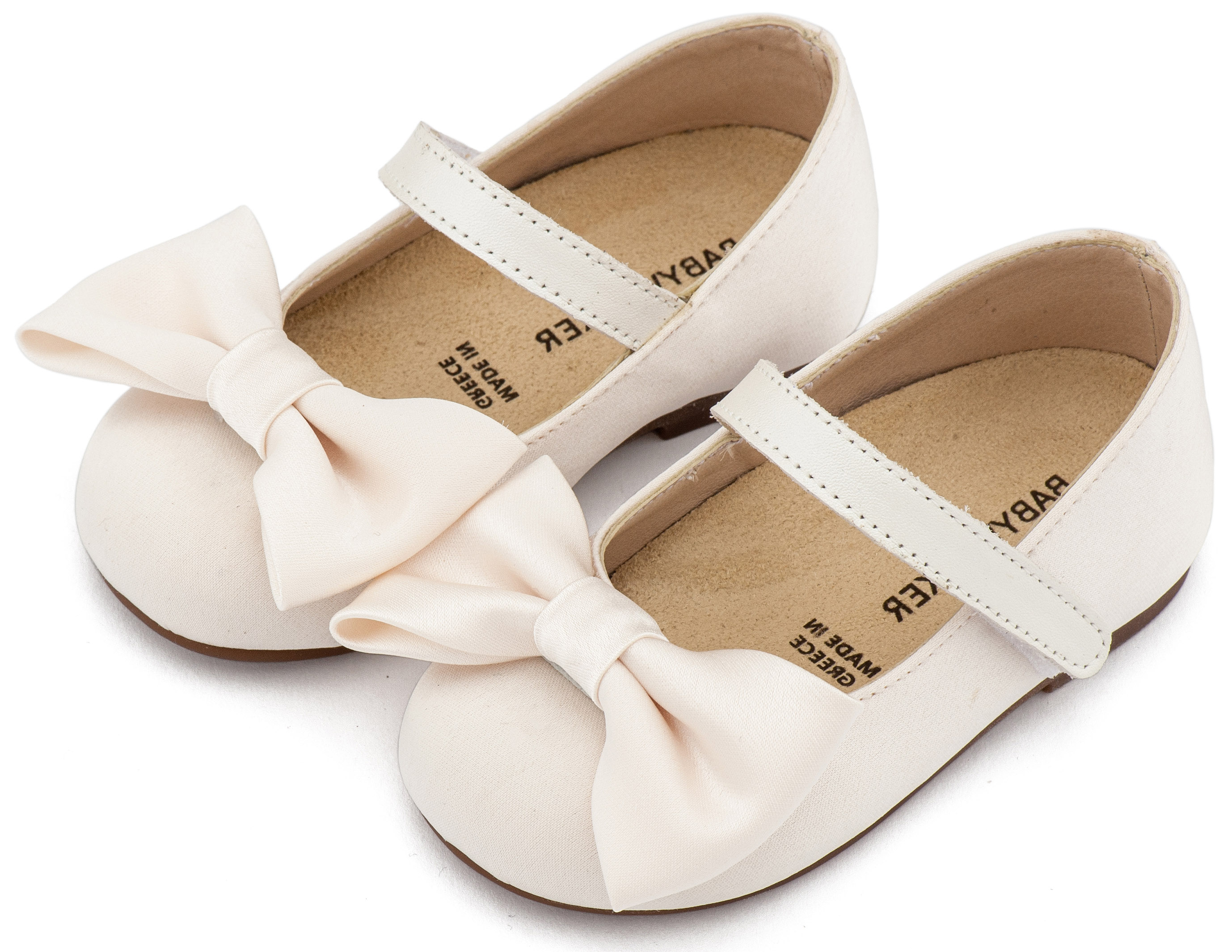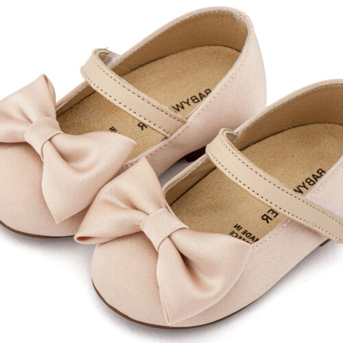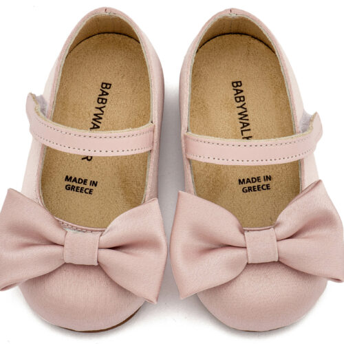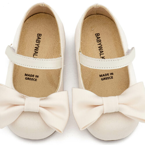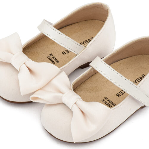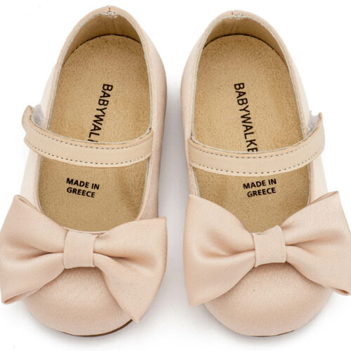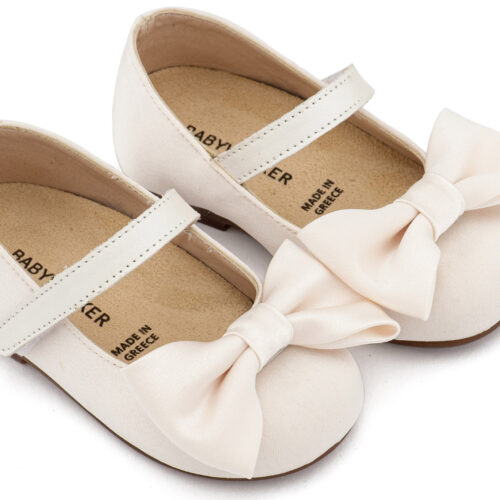 Βαπτιστικά Παπούτσια Babywalker Υφασμάτινο Γοβάκι Μονή Μπαρέτα Χρατς με Σατέν Χειροποίητο Φιογκο BW4870 σε Μπεζ, Ροζ, Εκρού και Λευκό Χρώμα.