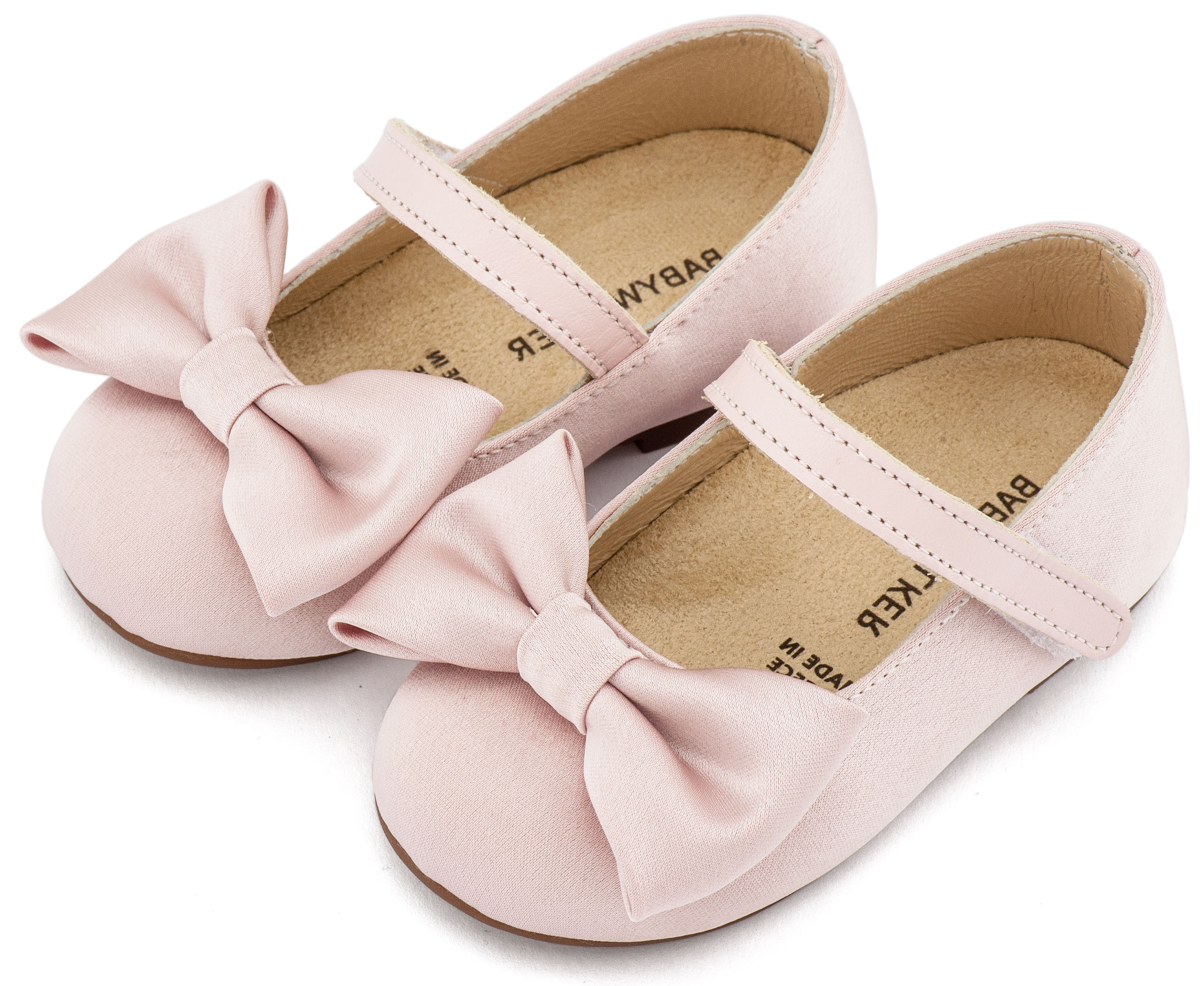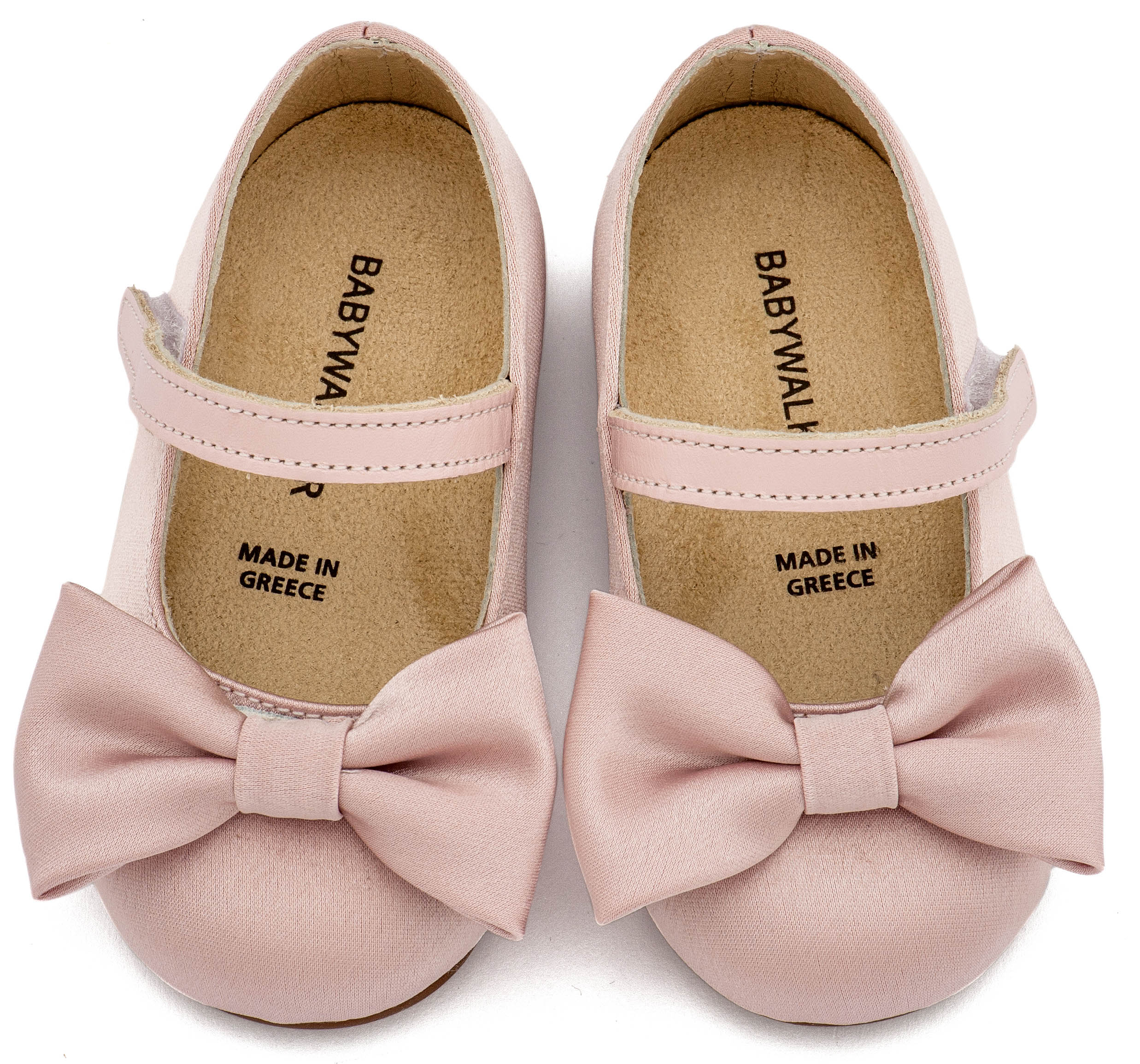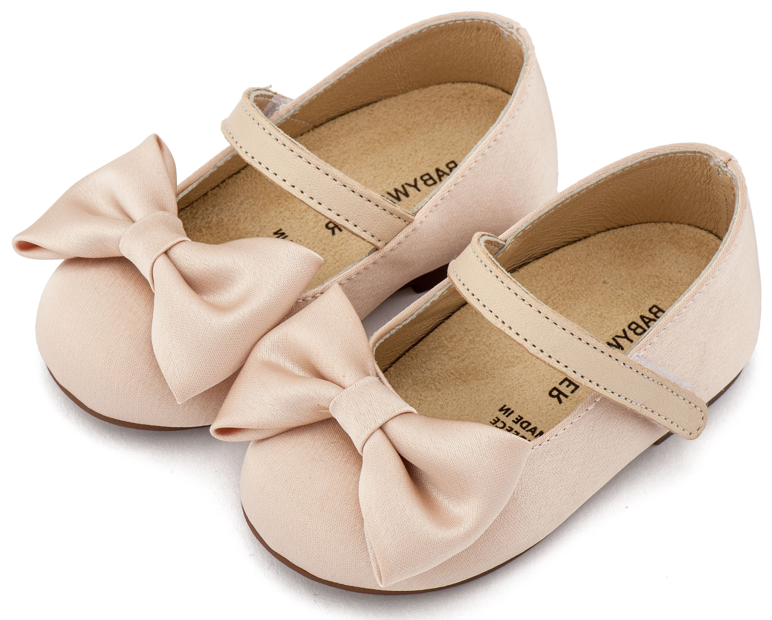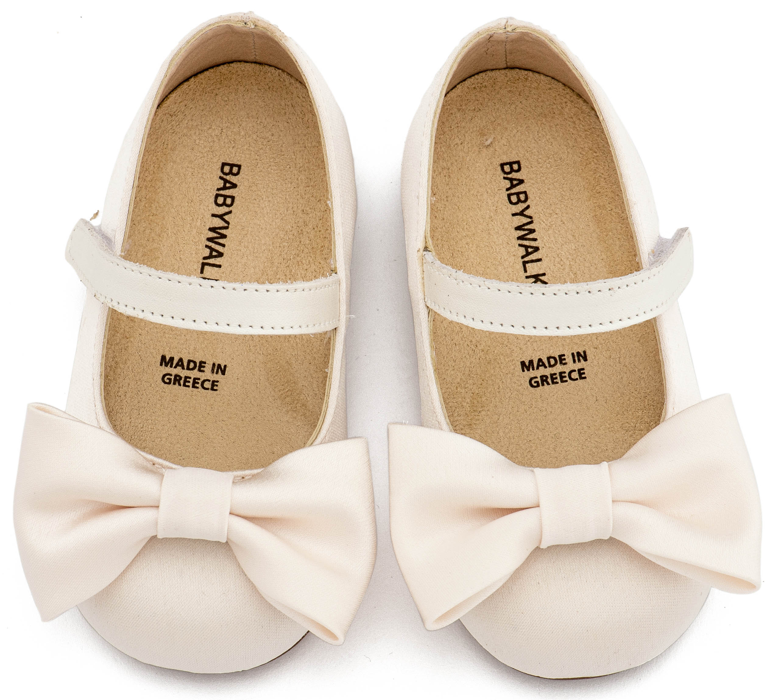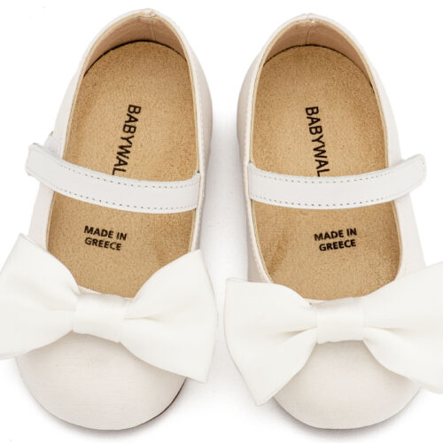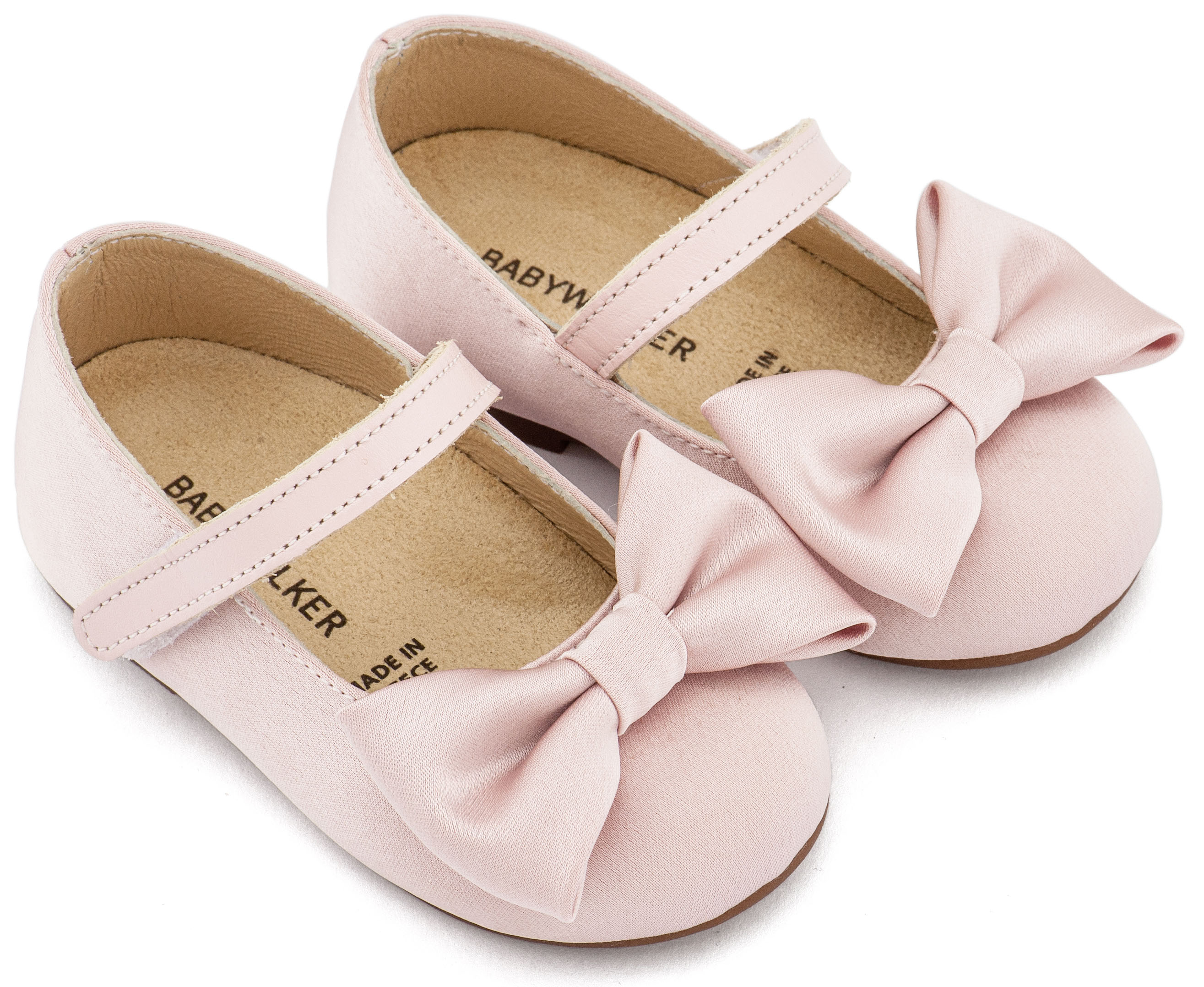 Βαπτιστικά Παπούτσια Babywalker Υφασμάτινο Γοβάκι Μονή Μπαρέτα Χρατς με Σατέν Χειροποίητο Φιογκο BW4870 σε Μπεζ, Ροζ, Εκρού και Λευκό Χρώμα.