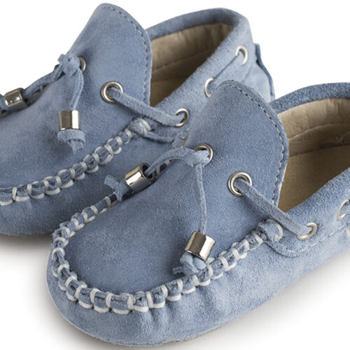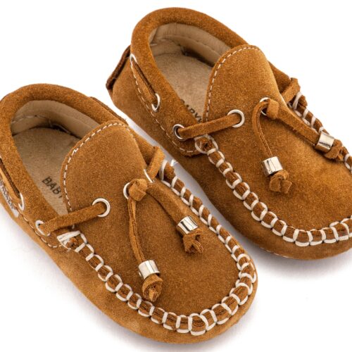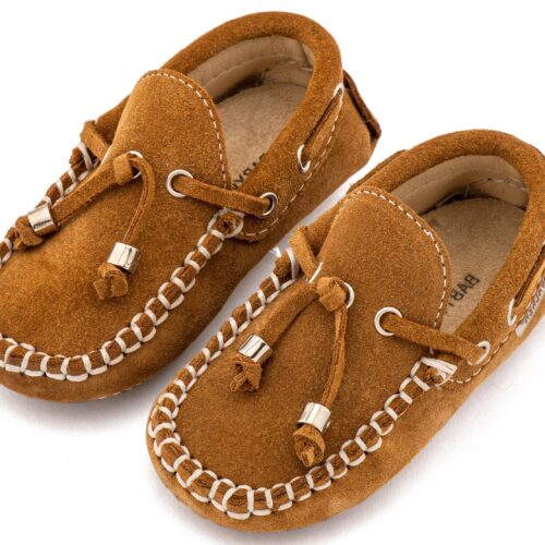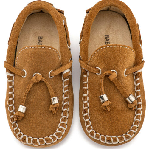 Βαπτιστικά Παπούτσια Babywalker Καστόρινο Δετό Μοκασίνι BW4139 Σιέλ και Κάμελ Χρώμα