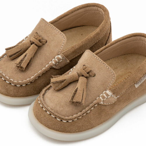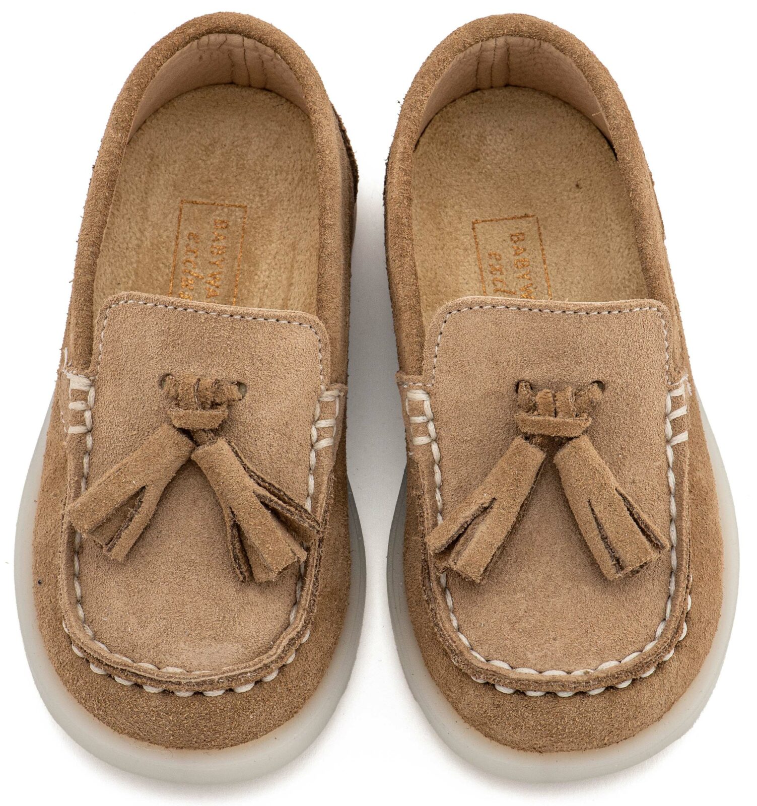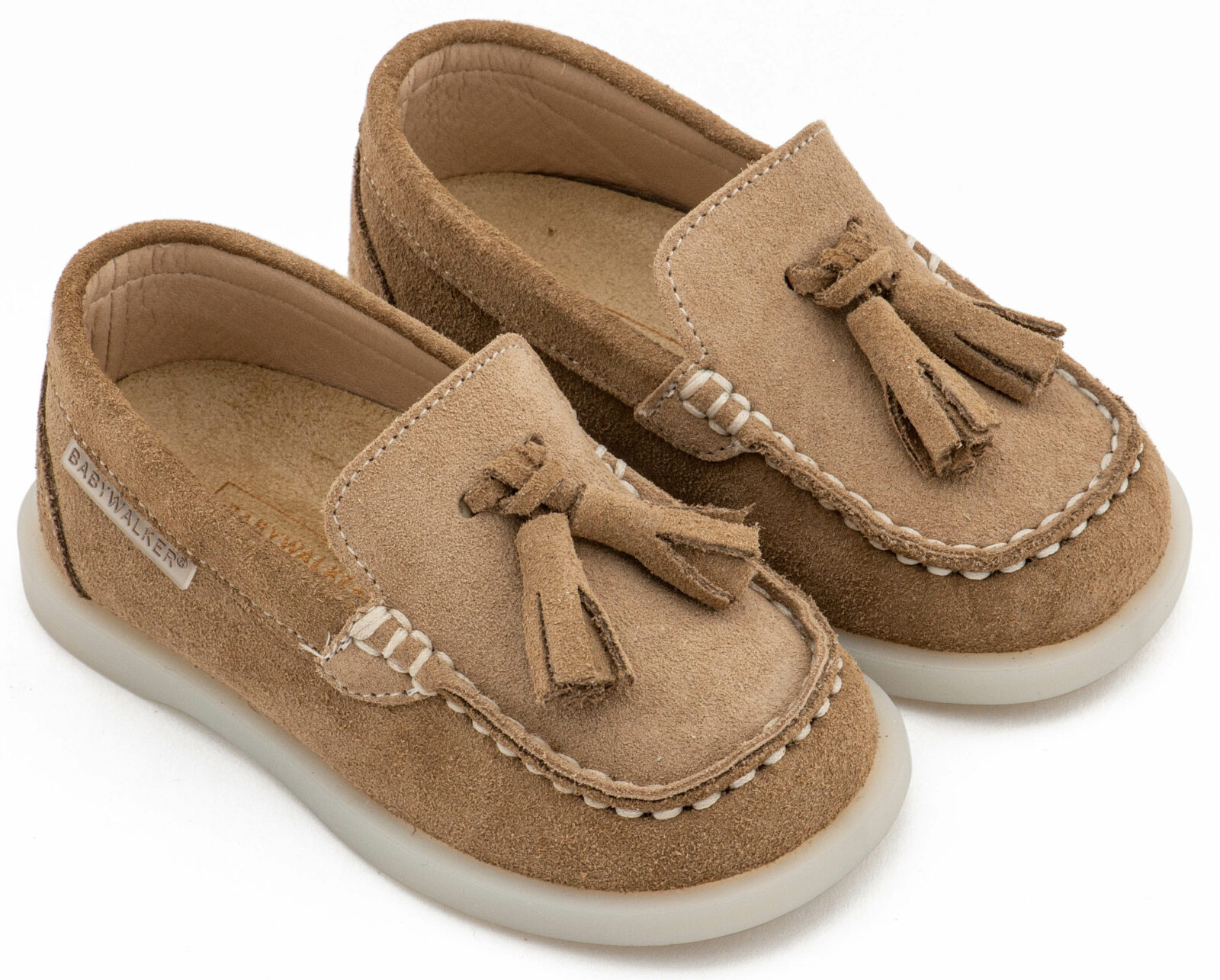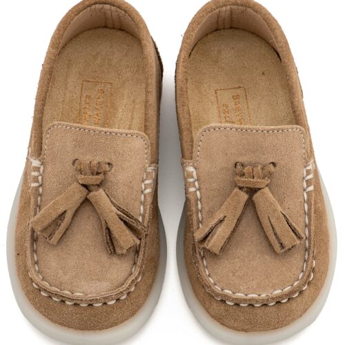 Βαπτιστικά Παπούτσια Babywalker EXC5317 Καστόρινο Loafers με Φουντάκια σε Μίνεραλ και Πούρο Χρώμα