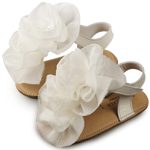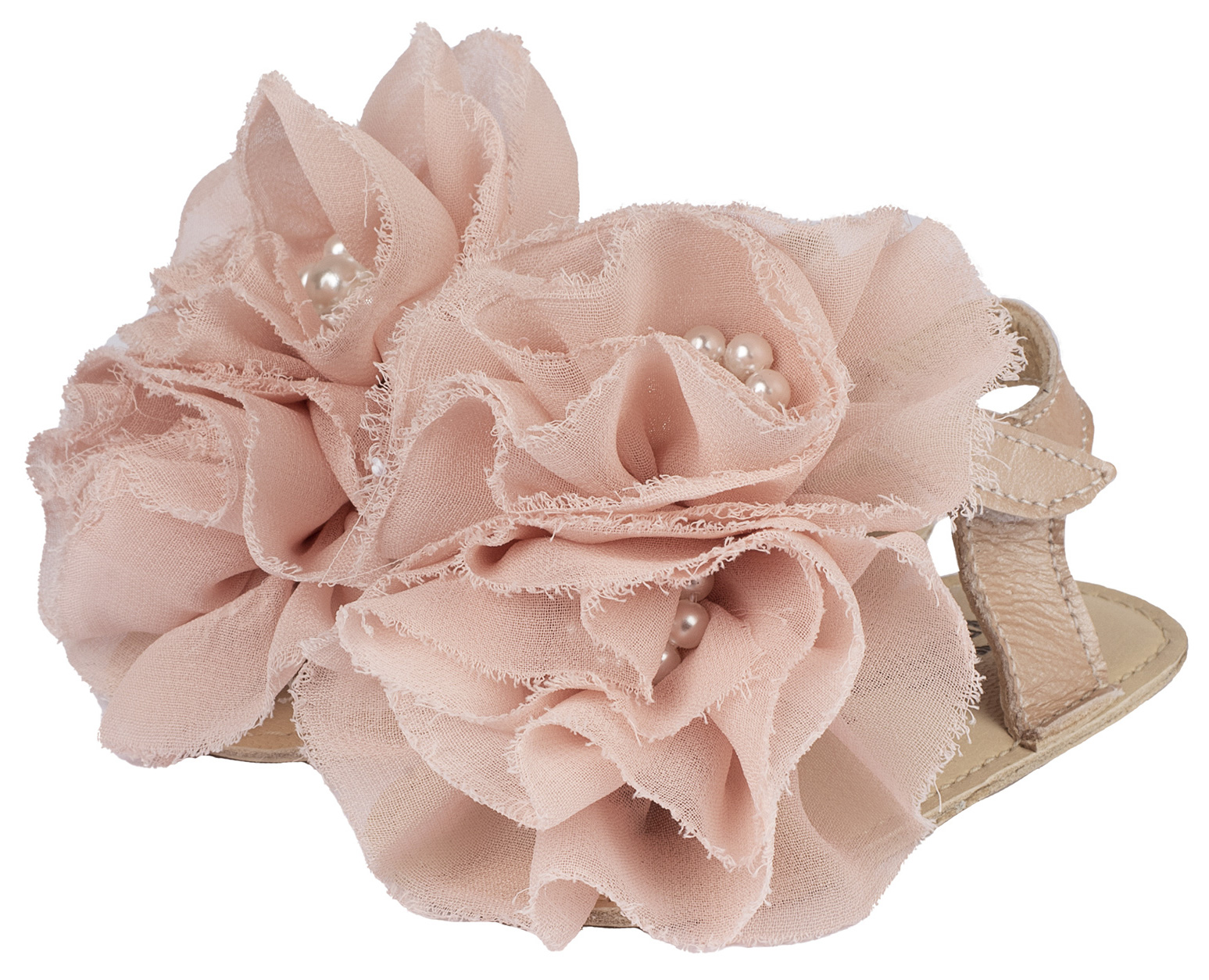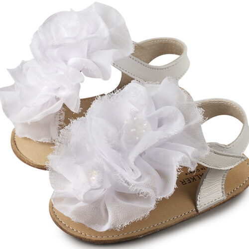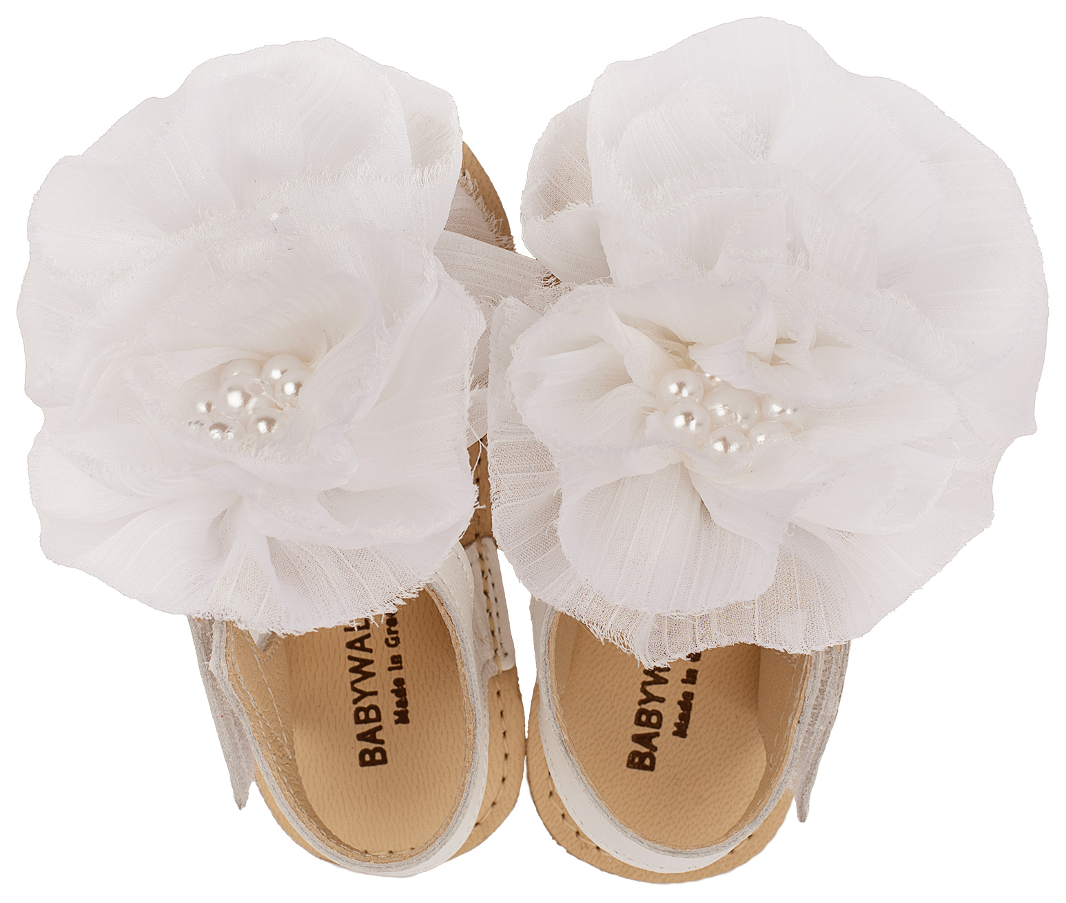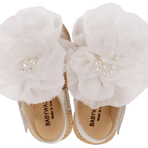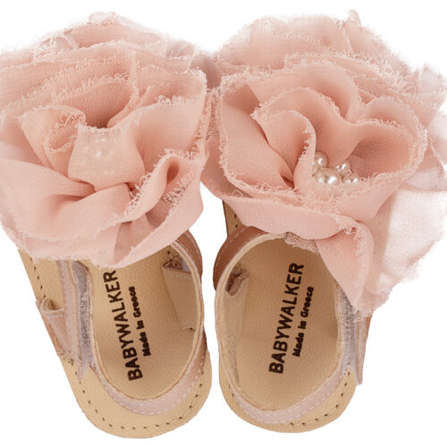 Βαπτιστικά Παπούτσια Babywalker Πέδιλο με Chiffon Λουλούδια MI1559 Ροζ, Εκρού, Λευκό