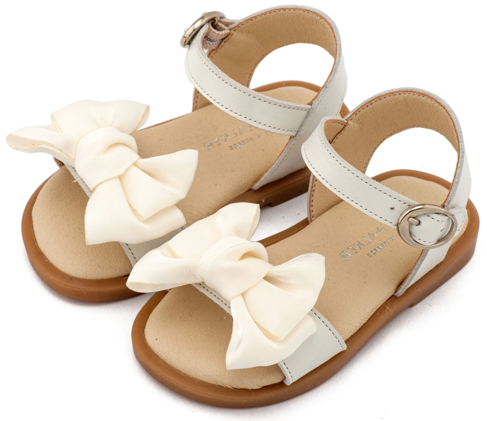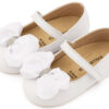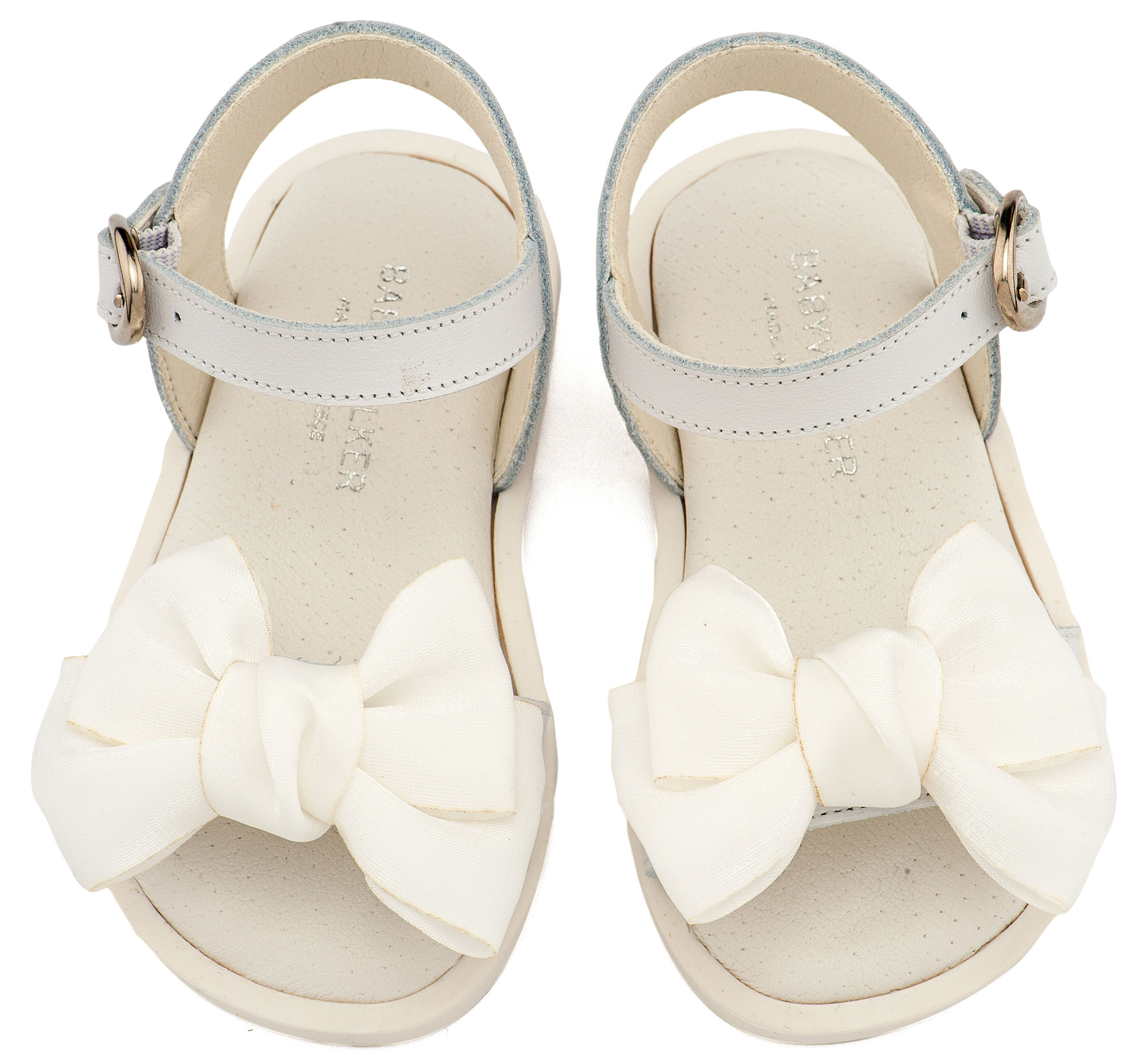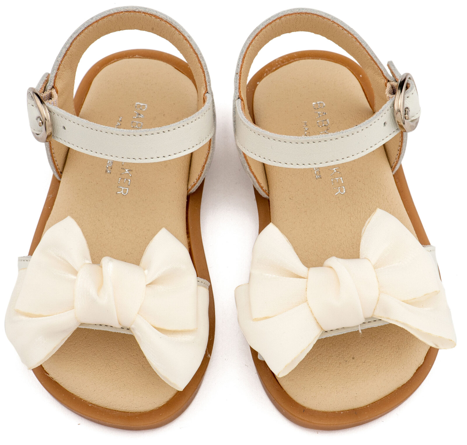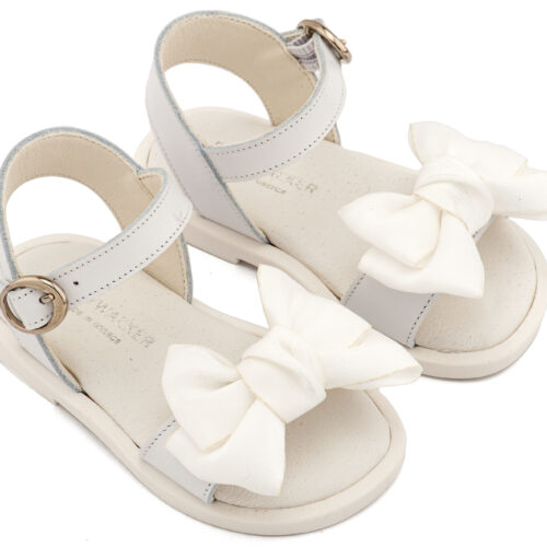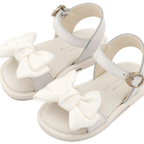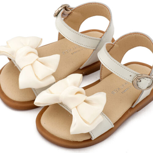Βαπτιστικά Παπούτσια Babywalker Δερμάτινο Πέδιλο Διακοσμημένο με Χειροποίητο Φιόγκο Οργάντζας και Πέρλες BW4892 σε Εκρού και Λευκό Χρώμα.