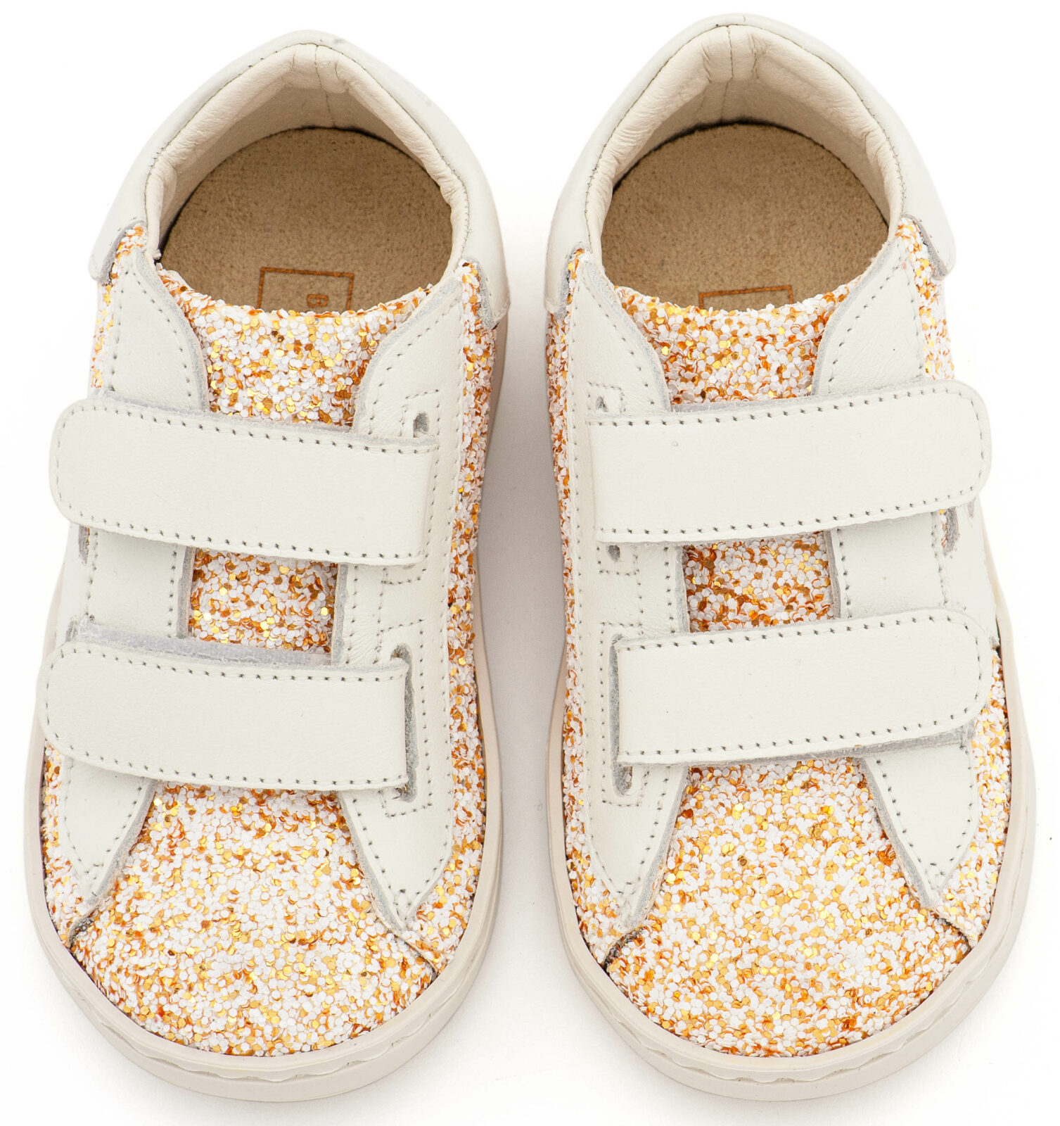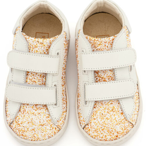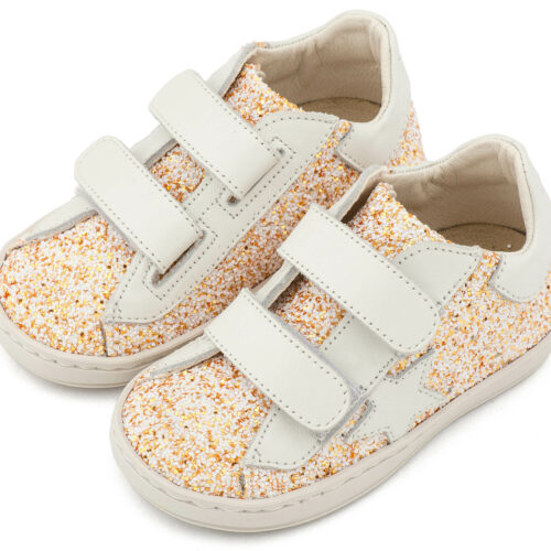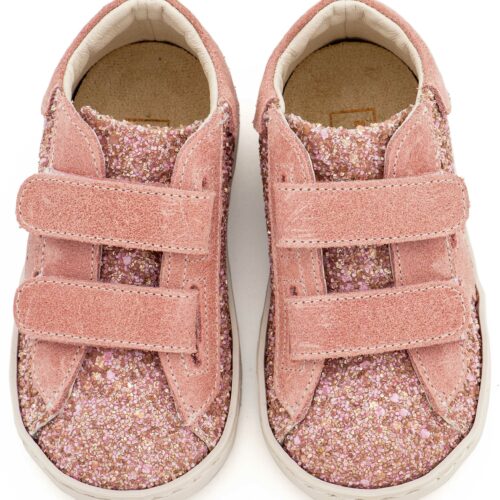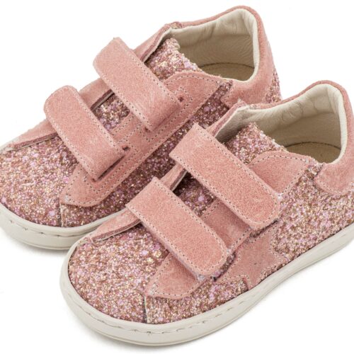 Βαπτιστικά Παπούτσια BabywalkerSneaker Sneaker Διπλό Χρατς απο Glitter και Δέρμα με Αστέρι στο Πλάι EXC5904 σε Ροζ Αντικέ και Εκρού Χρώμα.