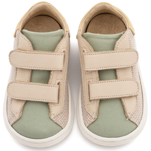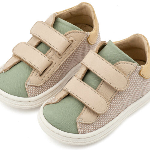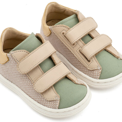 Βαπτιστικά Παπούτσια Babywalker BS3095 Σνίκερ με Διπλή Μπαρέτα Χρατς απο Ύφασμα και Δέρμα σε Μπεζ Μέντα Χρώμα